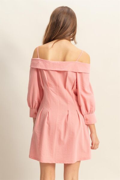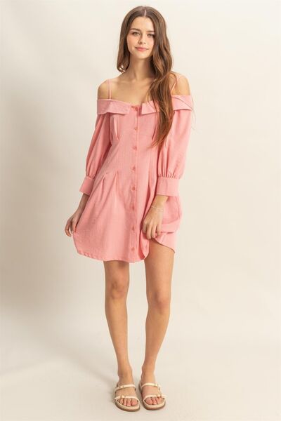 Button Down Spaghetti Strap Mini Dress with Pockets
