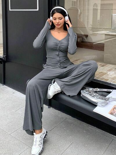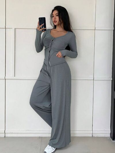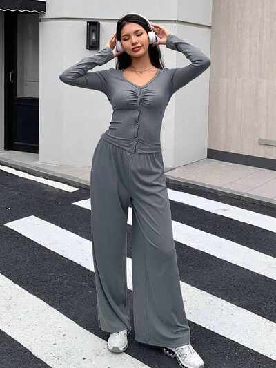 Button-Down Top & Wide Leg Pants Set