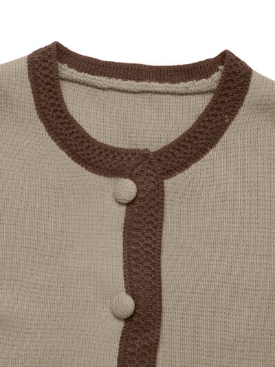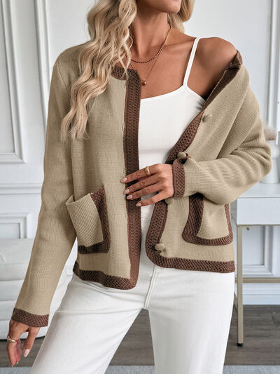 Button-Front Cardigan with Contrast Trim