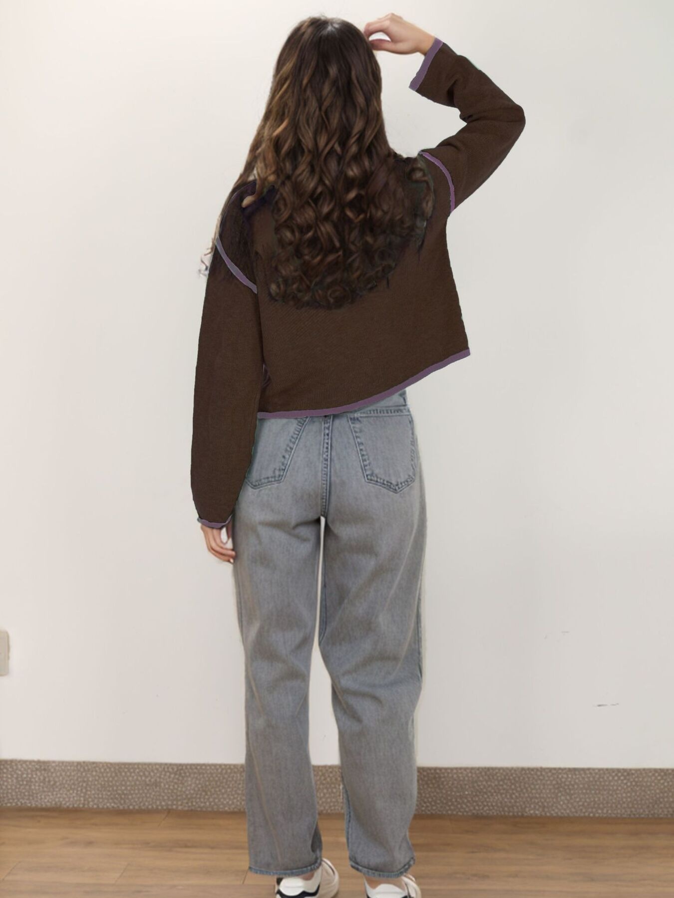 Button-Front Cardigan with Contrast Trim