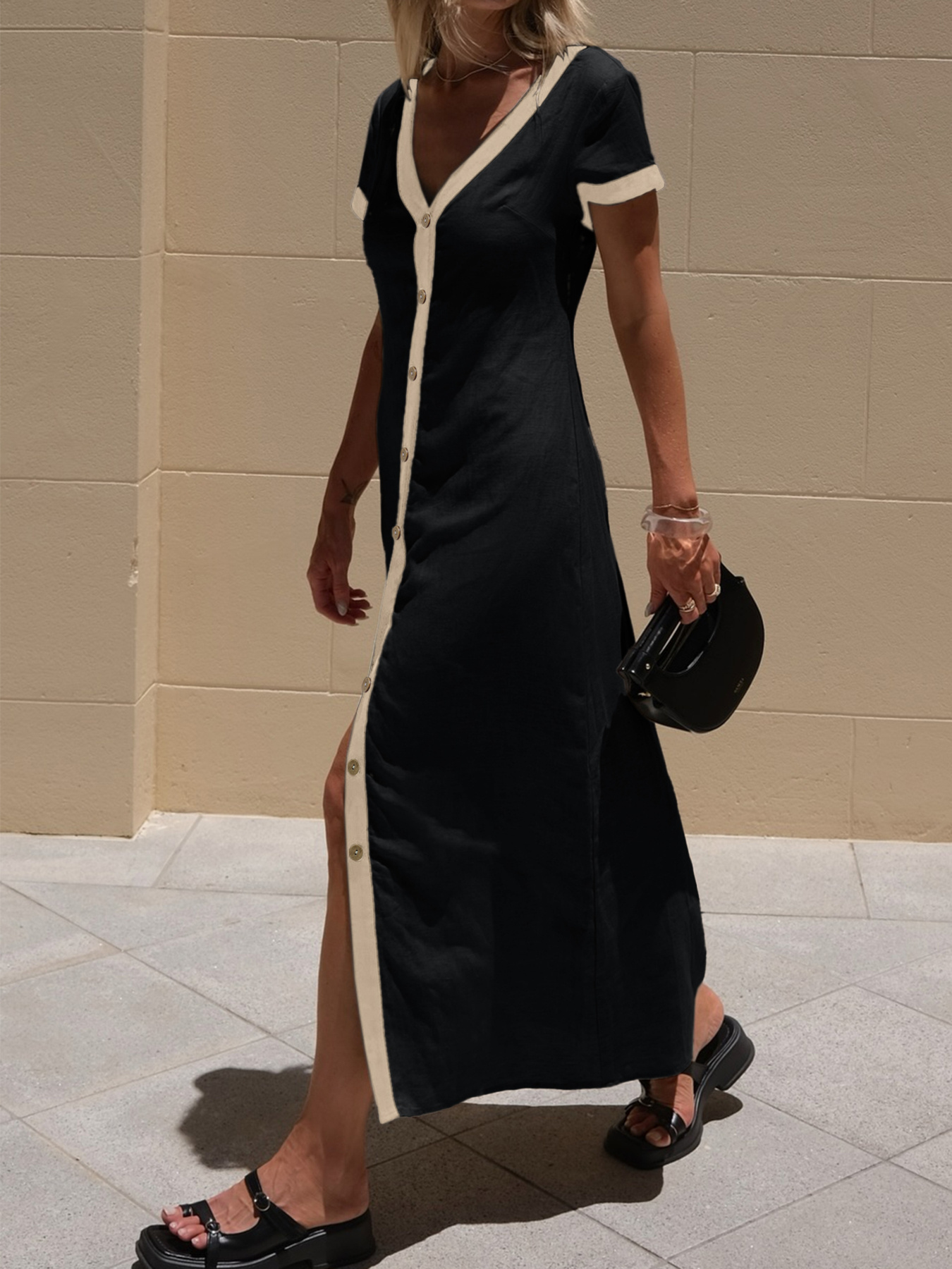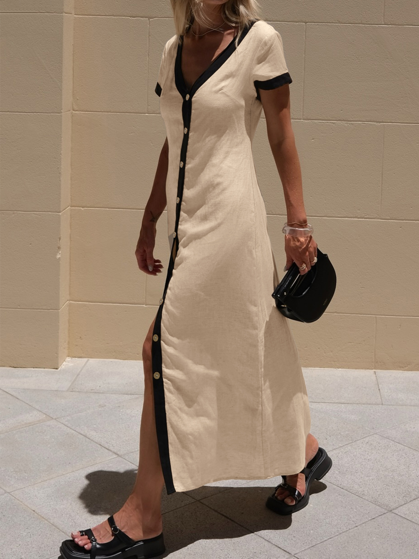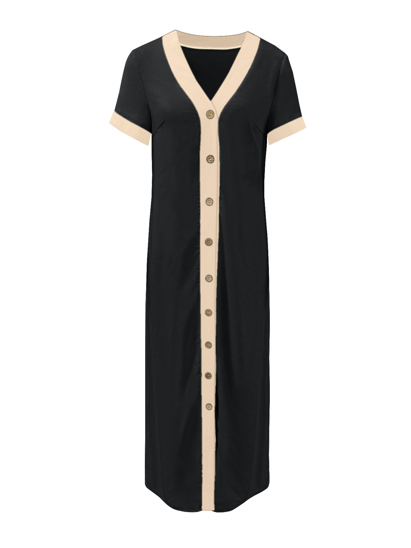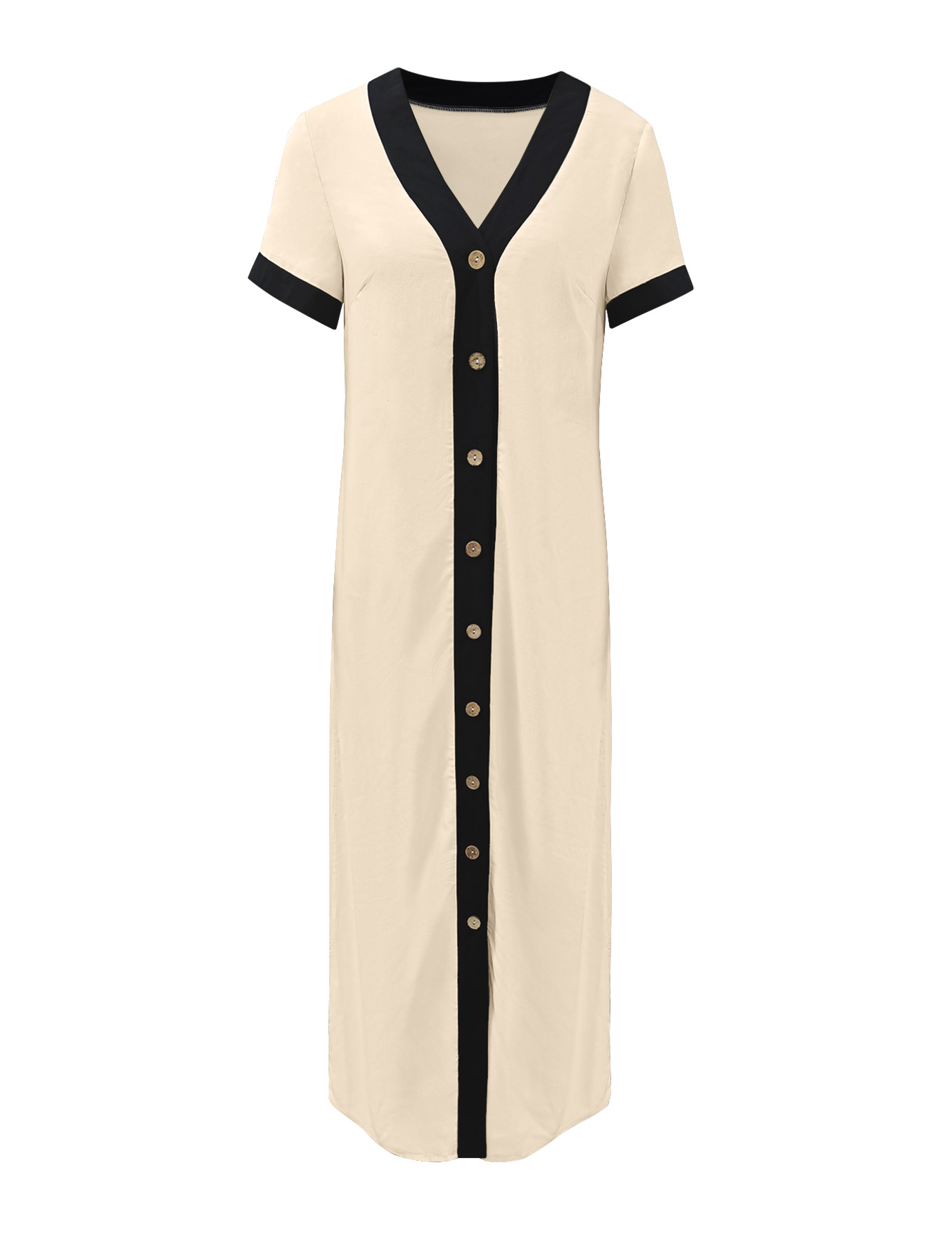 Button-Front Contrast Trim Midi Dress