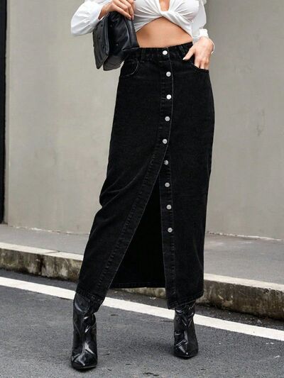 Button Front Denim Skirt