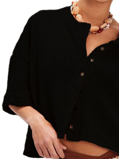 Button-Front Half Sleeve Cardigan