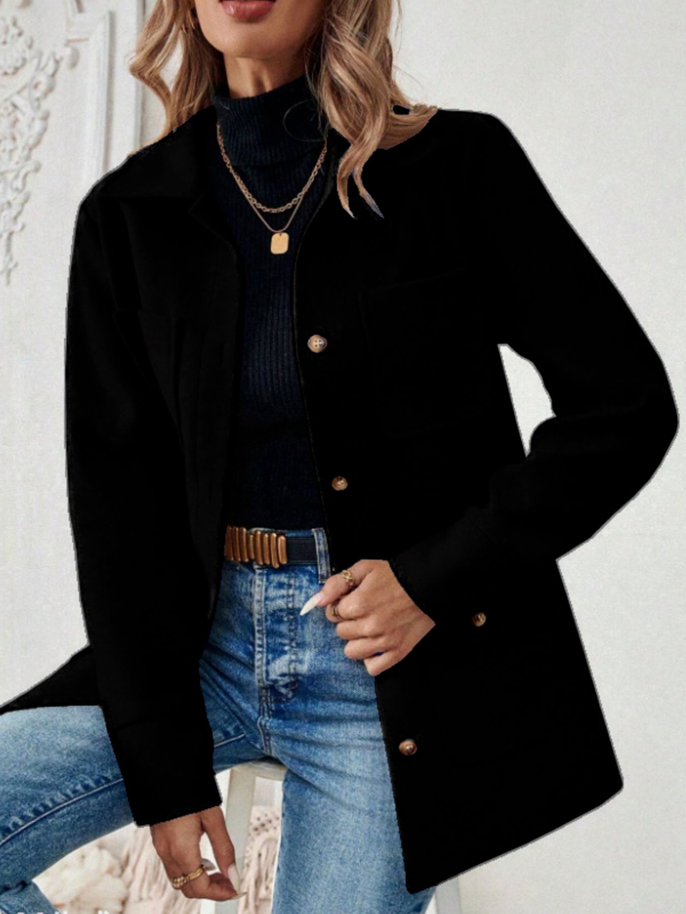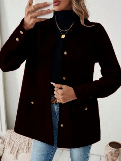 Button-Front Pocketed Long Sleeve Outerwear