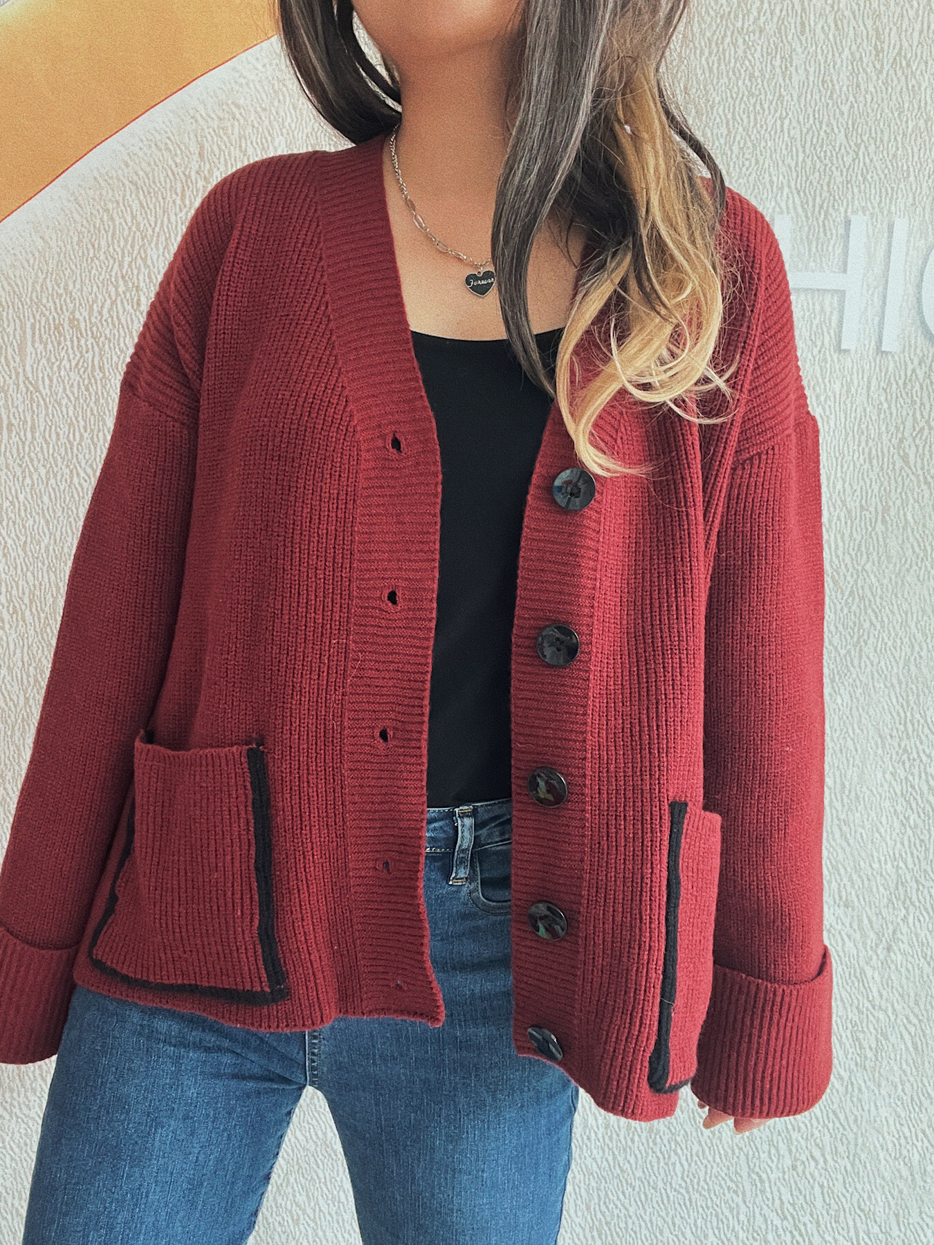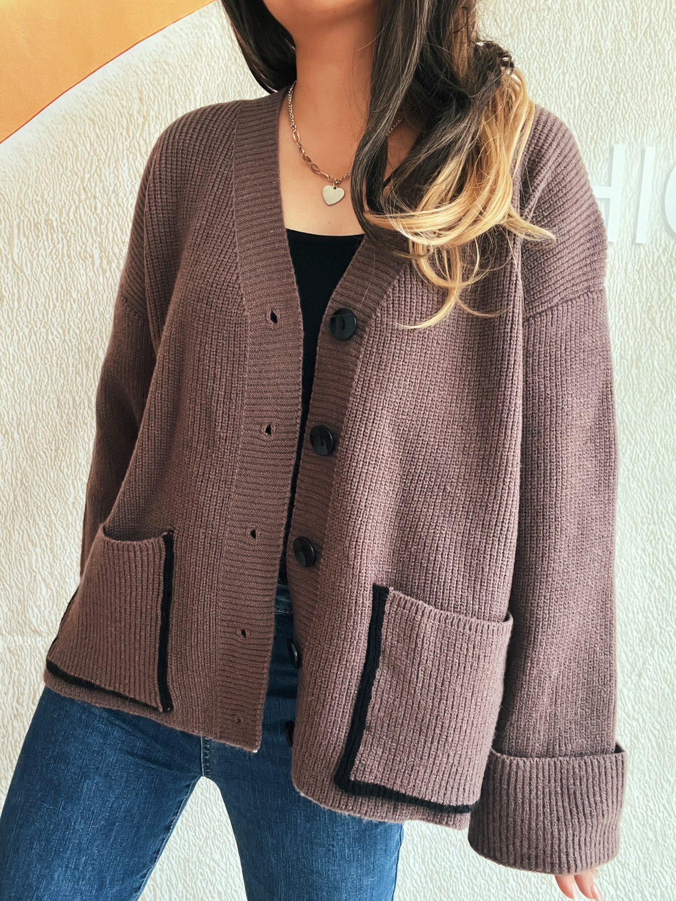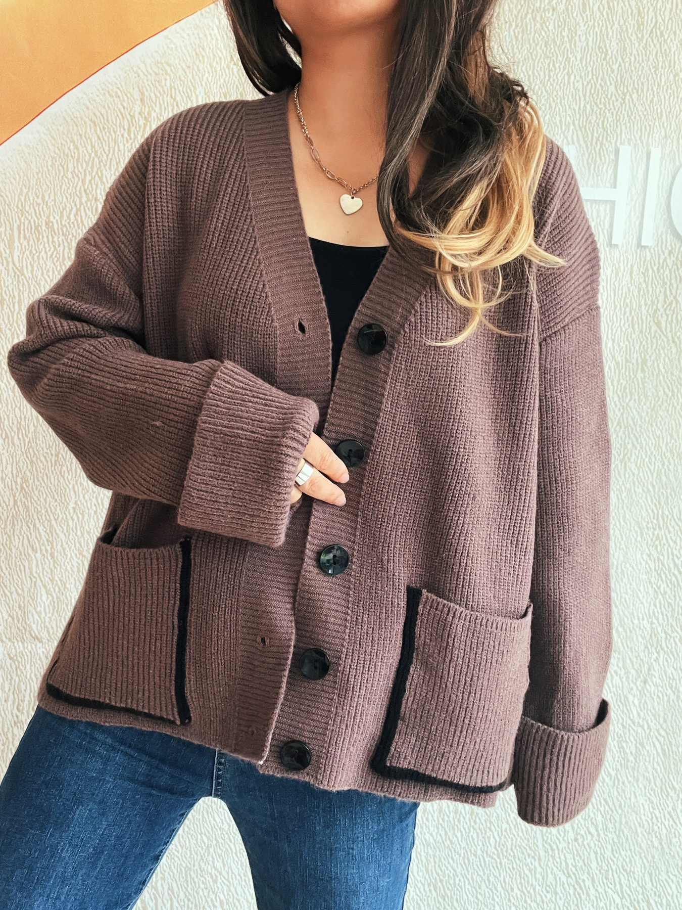 Button-Front Ribbed Cardigan with V-Neck