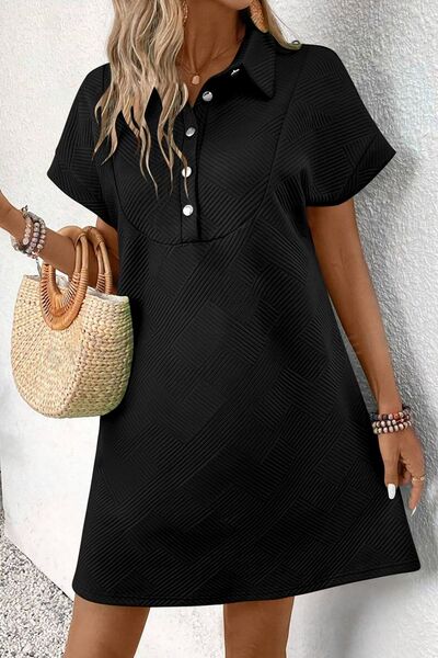 Button Front Short Sleeve Mini Dress