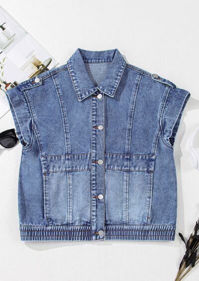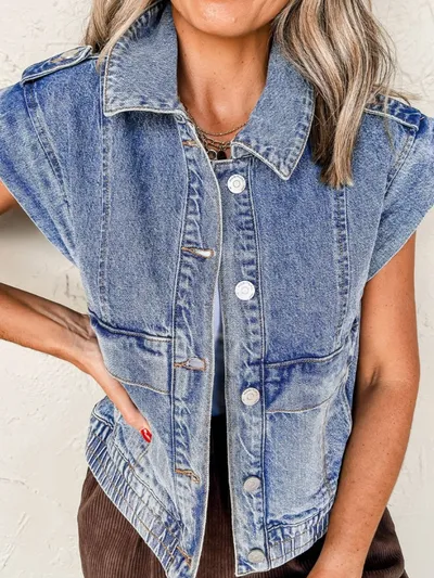 Button Up Cap Sleeve Denim Jacket