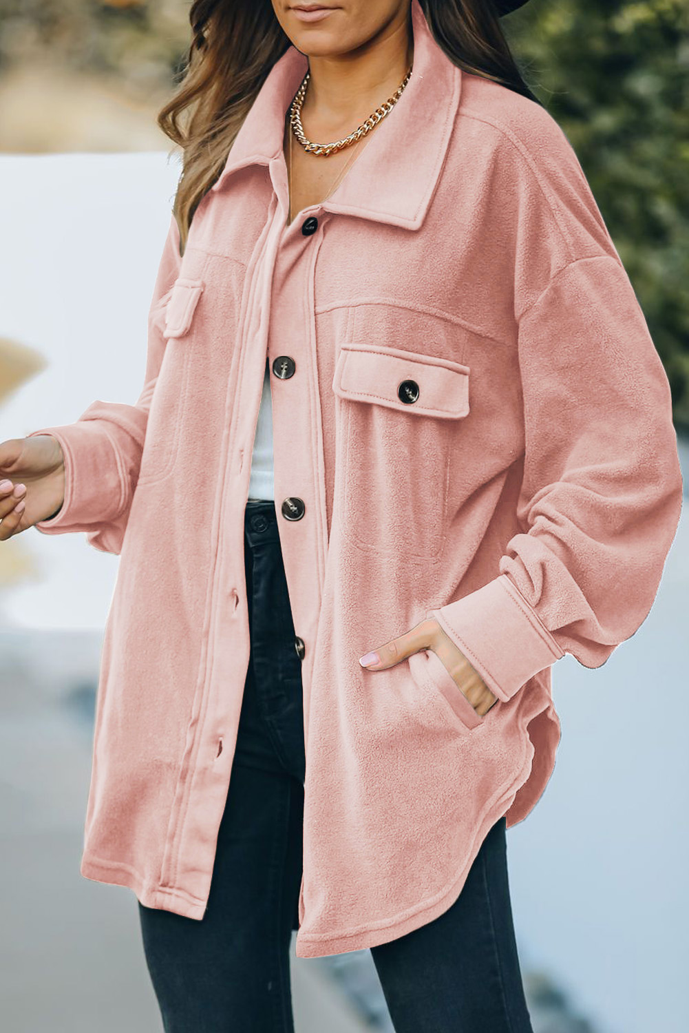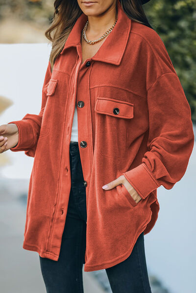 Button Up Collared Neck Long Sleeve Jacket