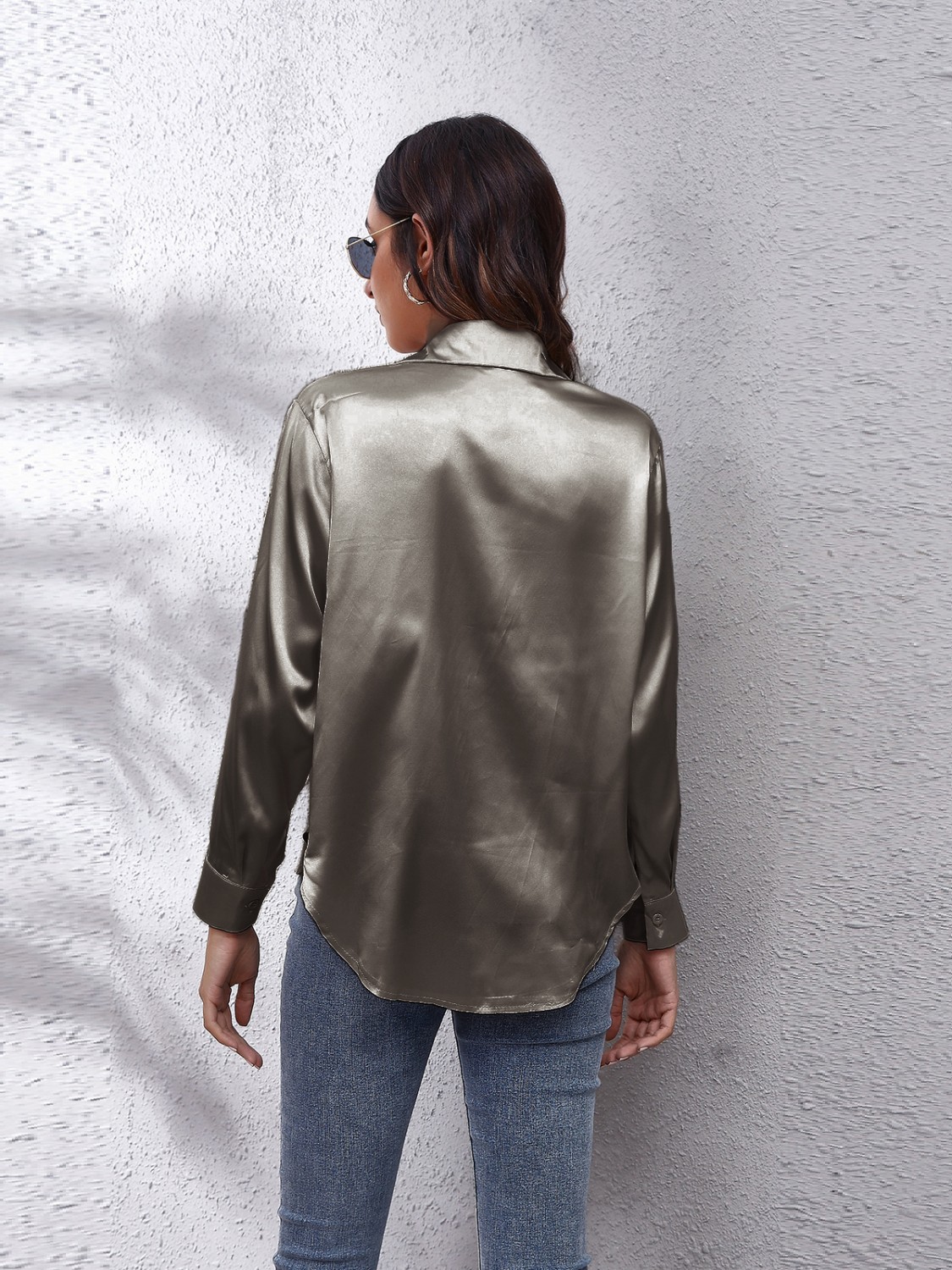 Button Up Collared Neck Long Sleeve Shirt