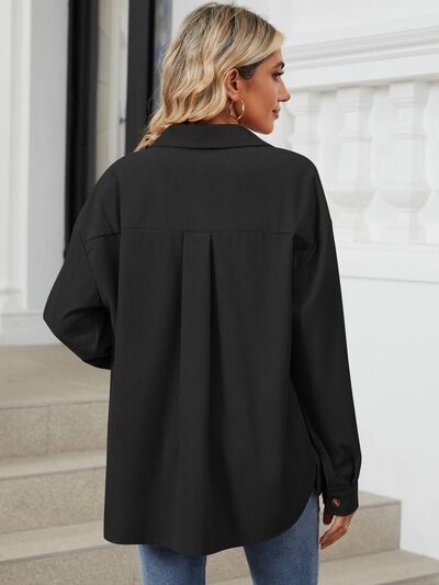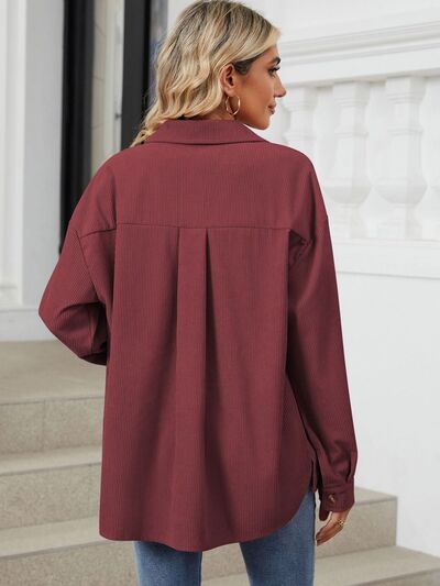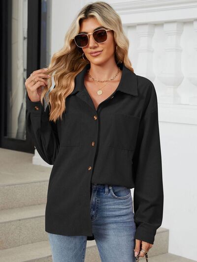 Button Up Dropped Shoulder Long Sleeve Outerwear