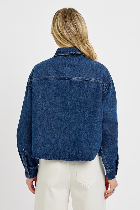 Button Up Long Sleeve Denim Shacket