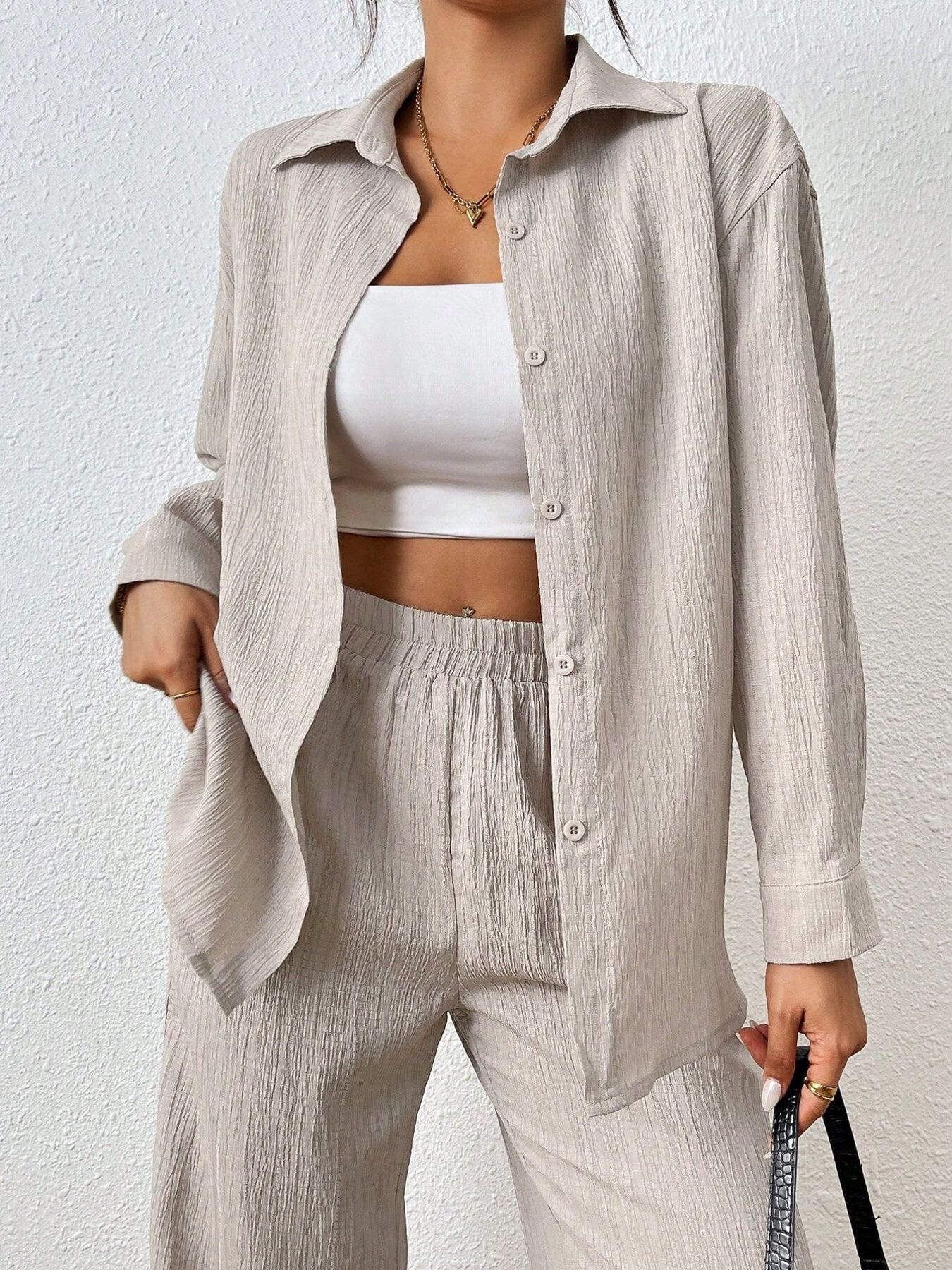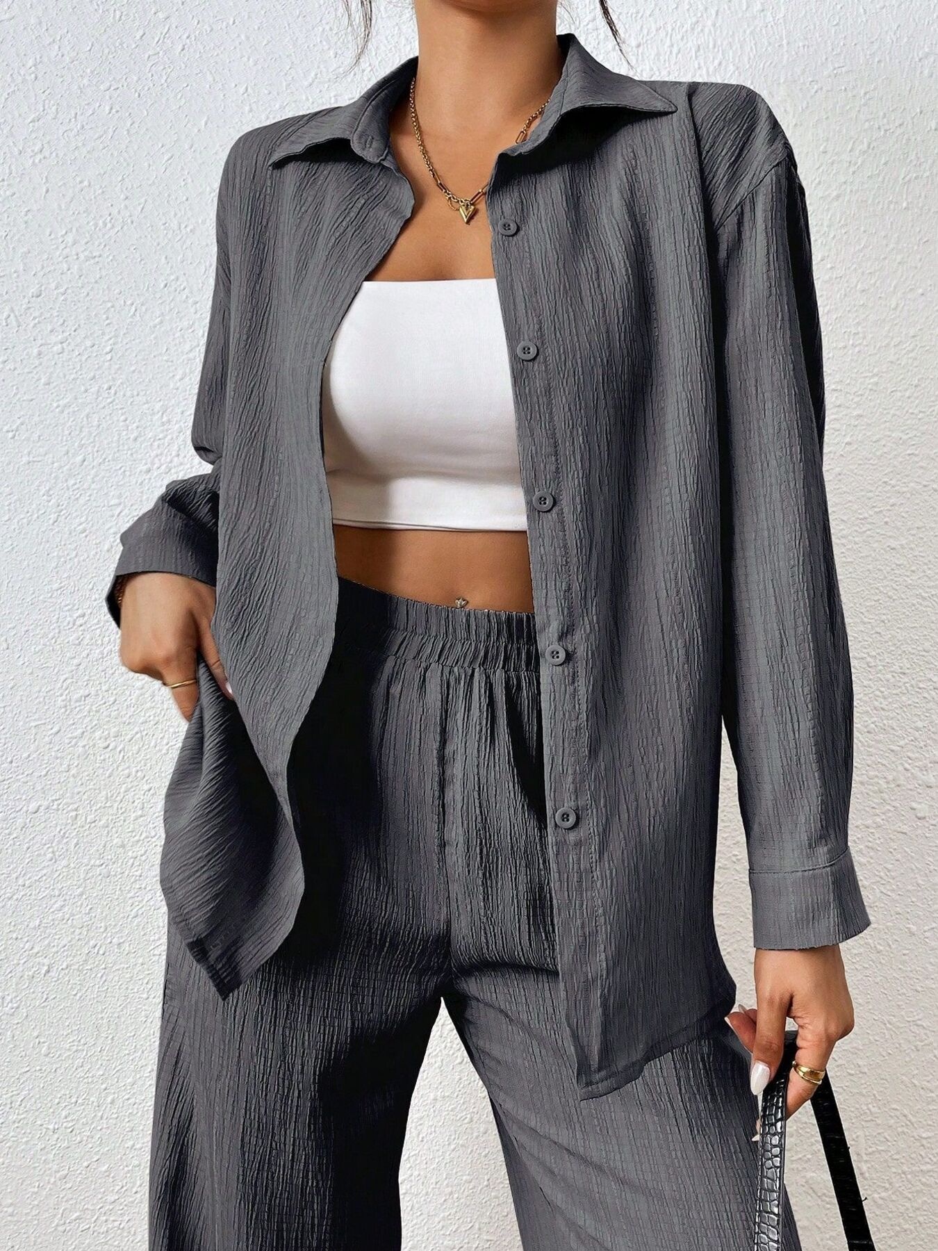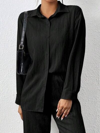 Button Up Long Sleeve Shirt and Pants Set
