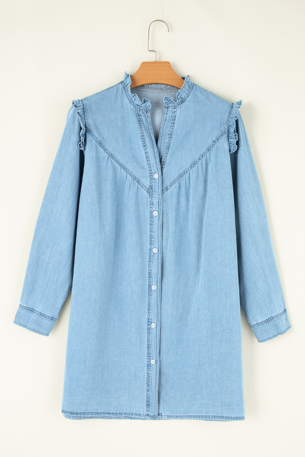 Button Up Notched Long Sleeve Denim Dress