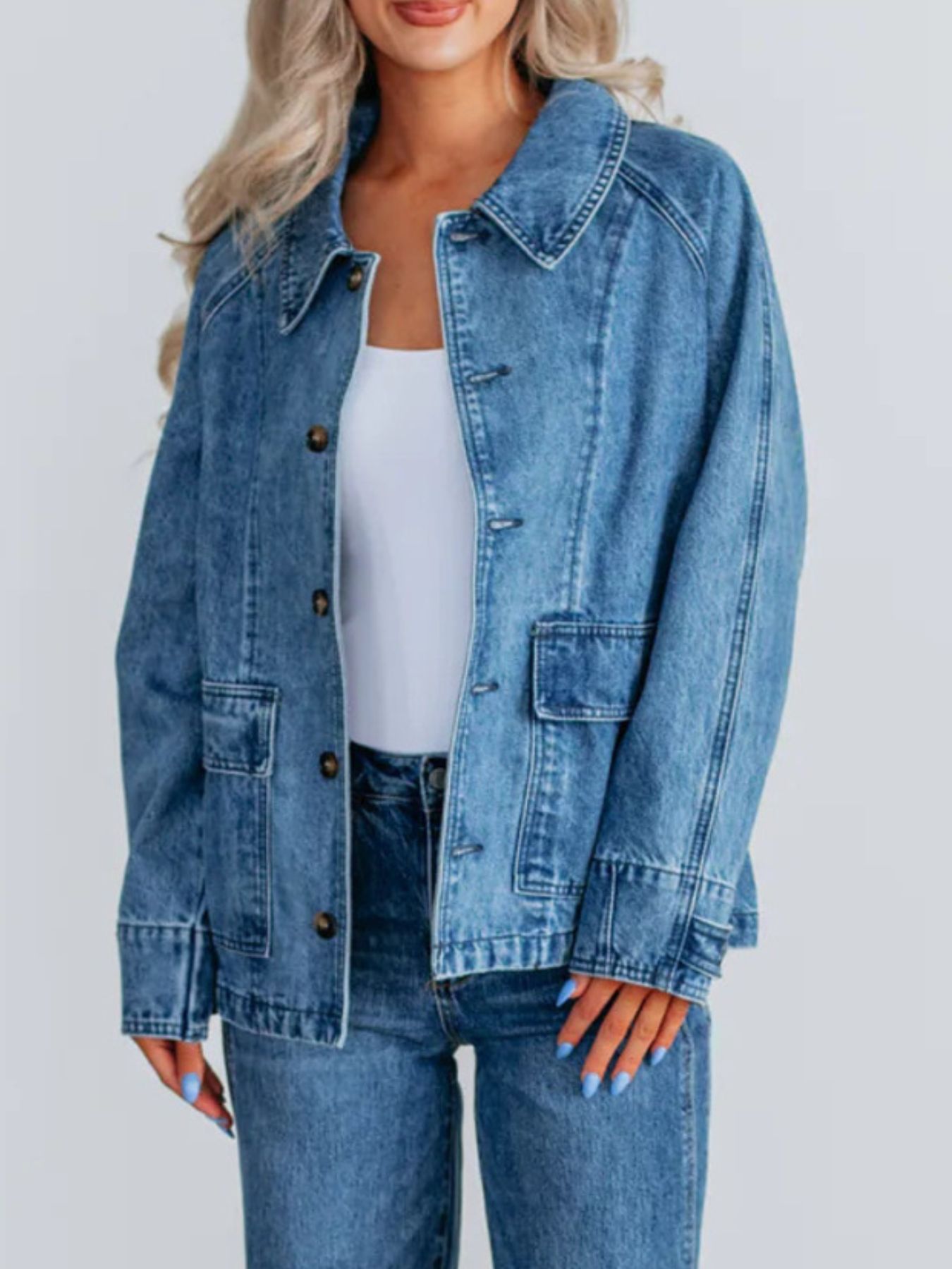 Button Up Raglan Sleeve Denim Jacket