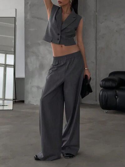 Button Up Sleeveless Top and Pants Set