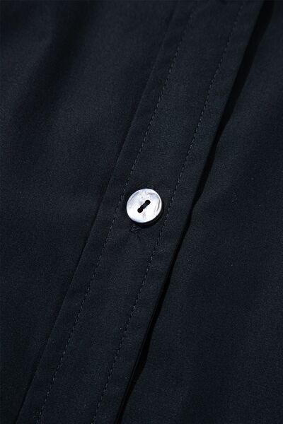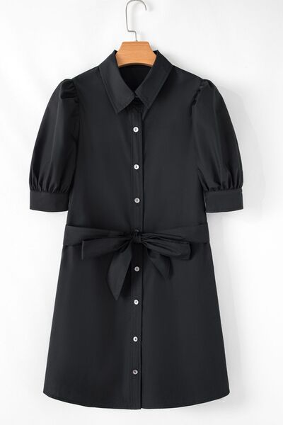 Button Up Tie Waist Puff Sleeve Mini Shirt Dress
