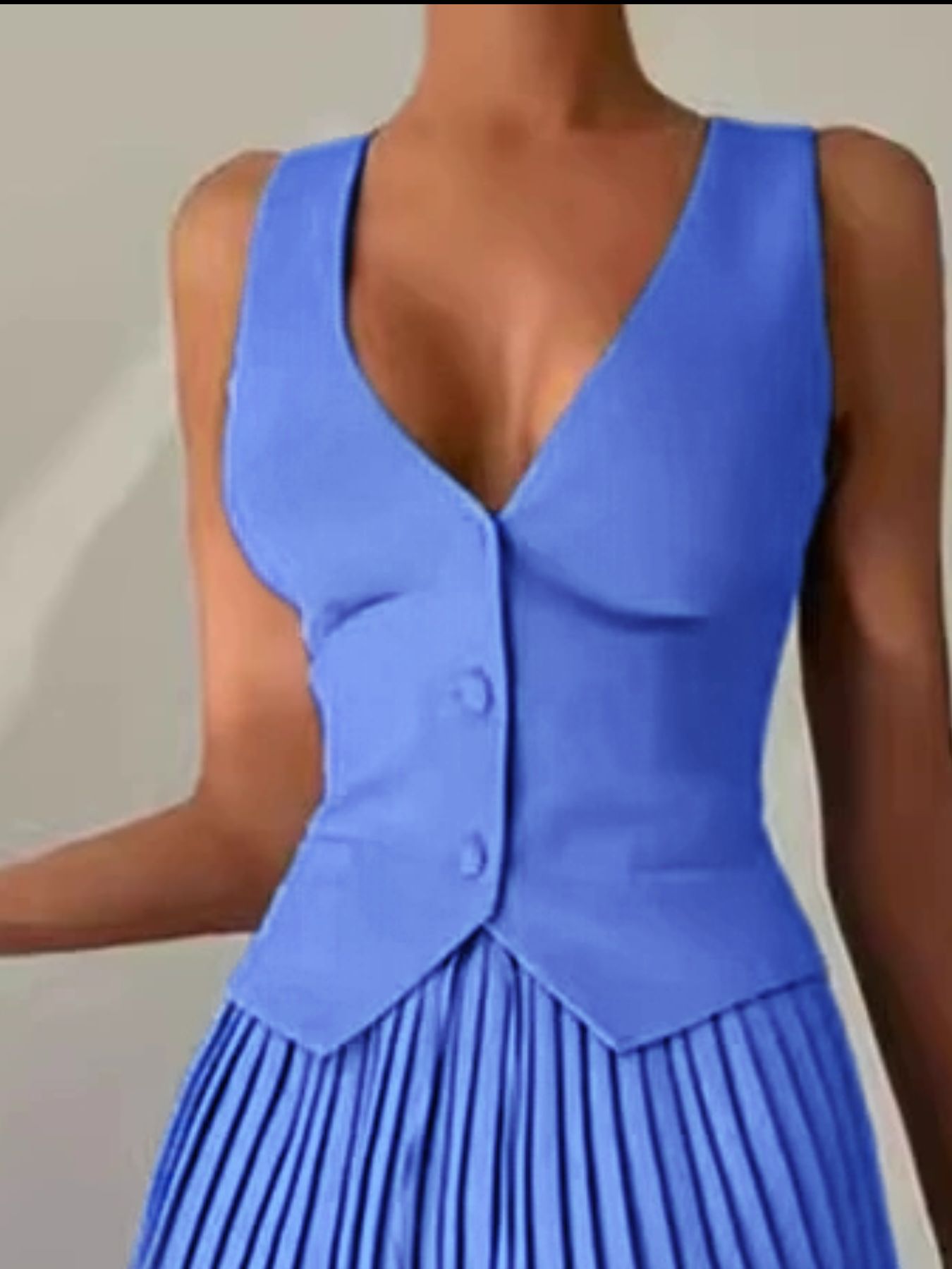 Button Up Vest and Pleated Mini Skirt Set