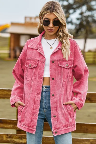 Buttoned Collared Neck Denim Jacket with Pockets