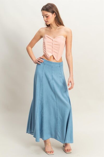 Buttoned Front Strapless Knit Bustier Top