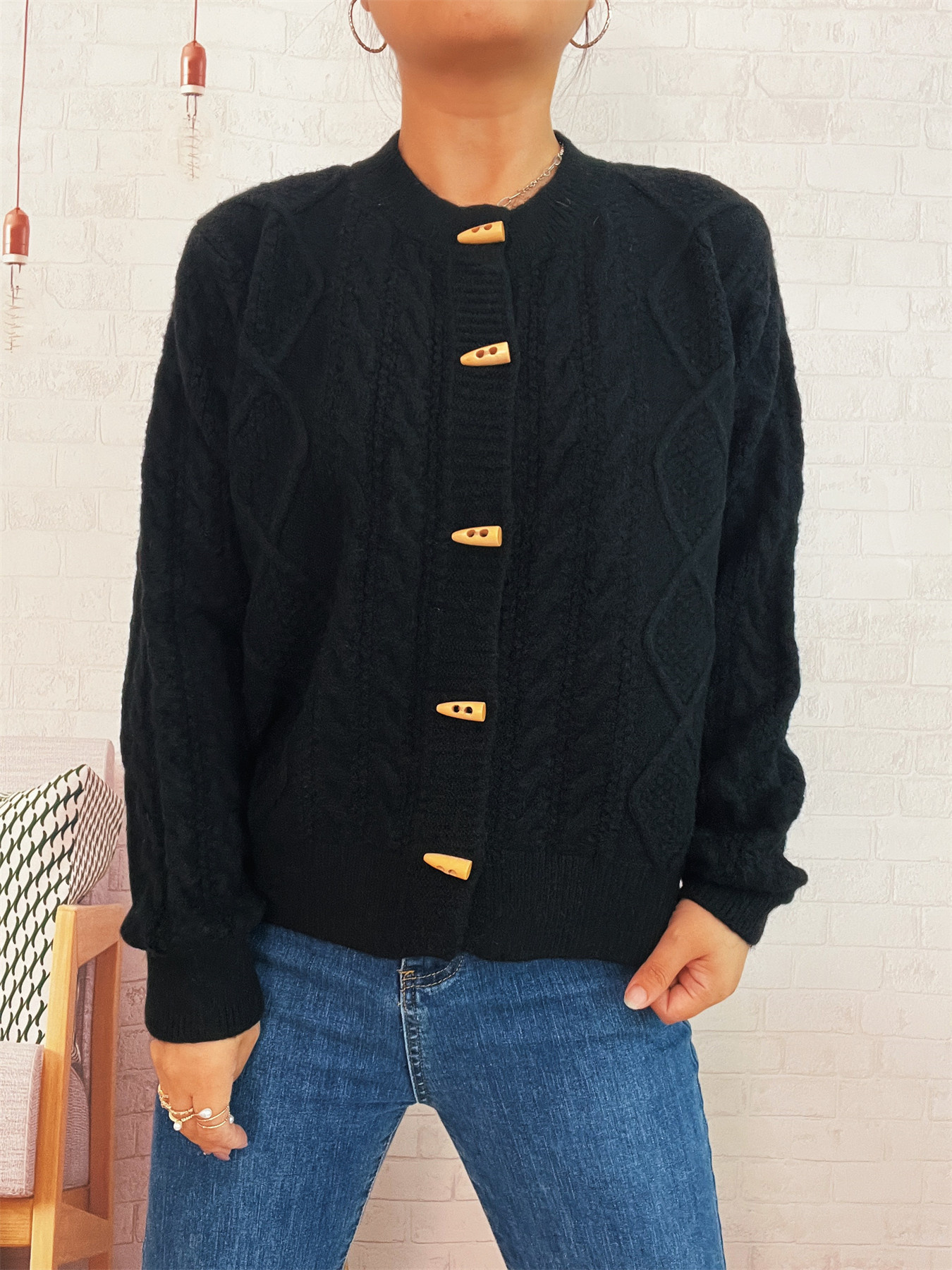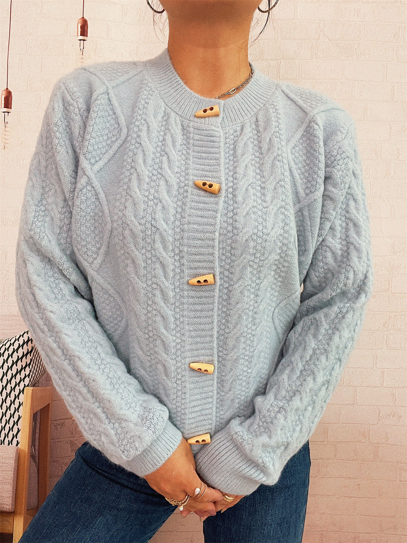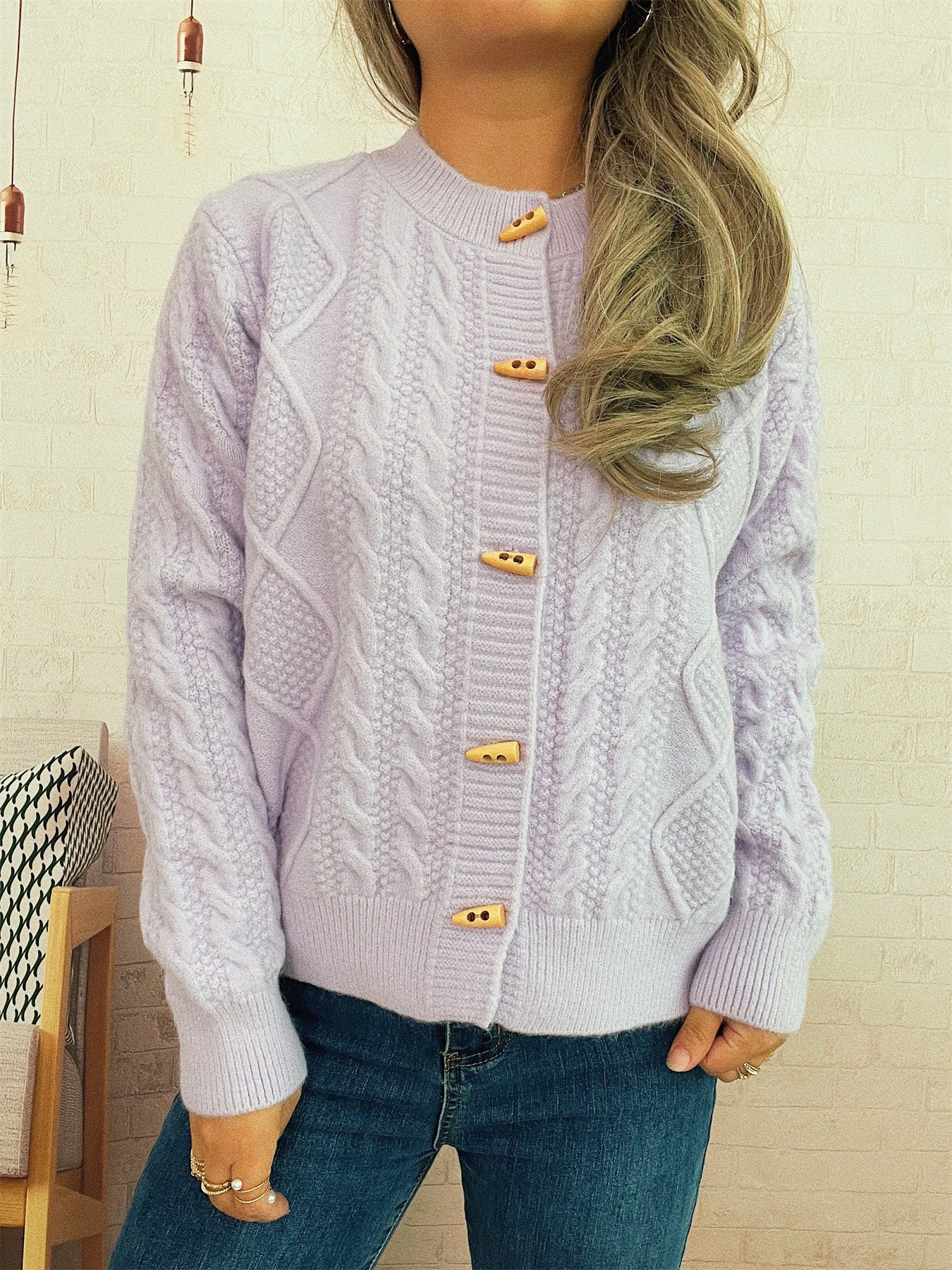 Cable Knit Button-Up Cardigan