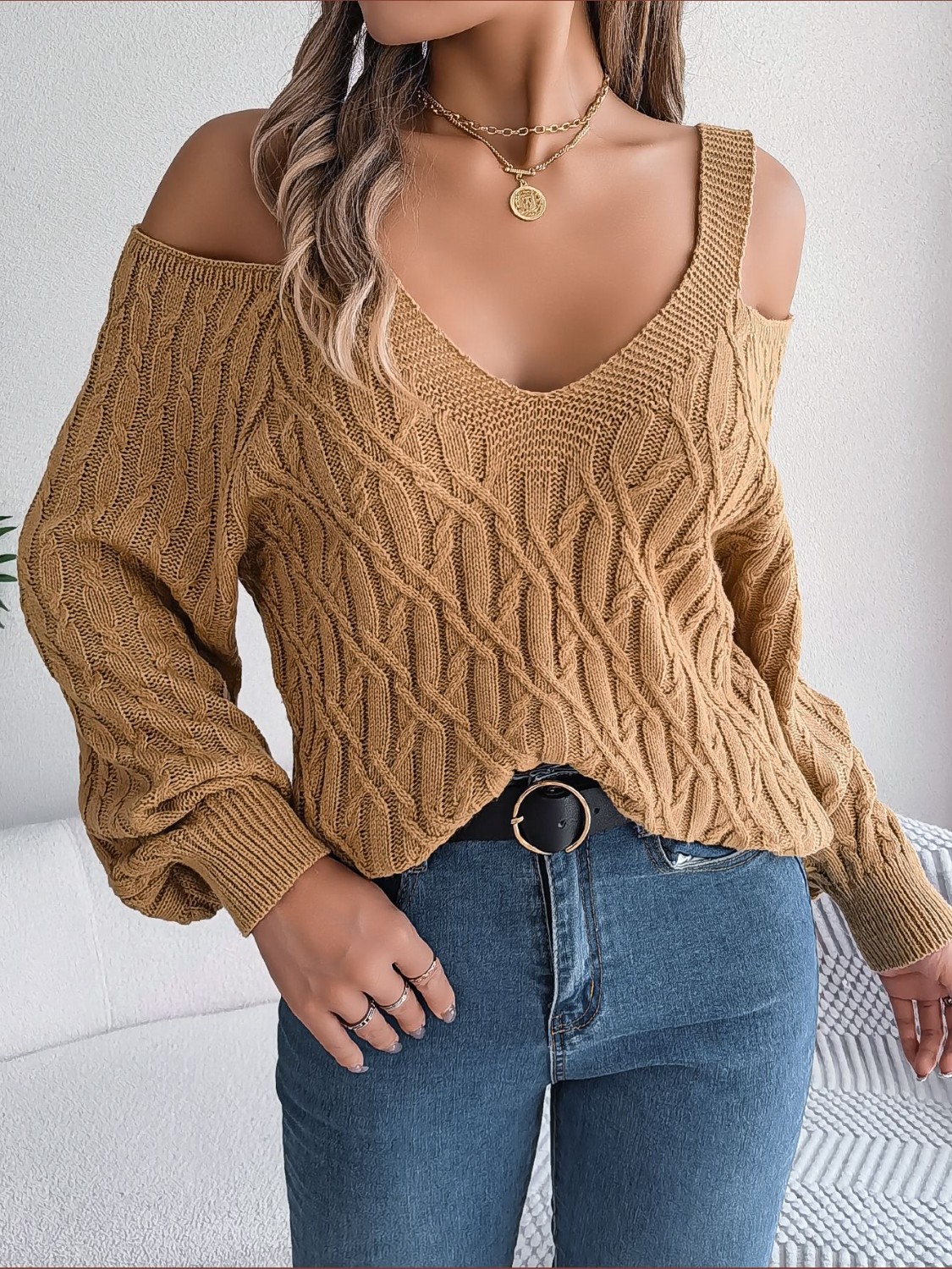 Cable-Knit Cold Shoulder Long Sleeve Sweater