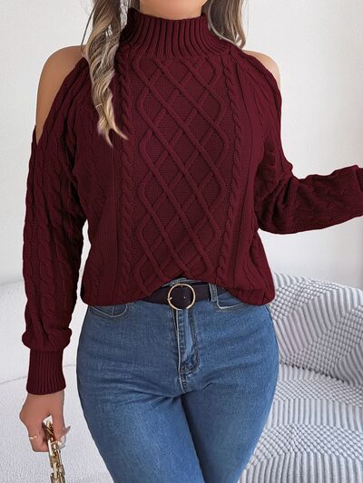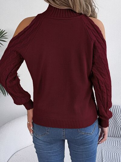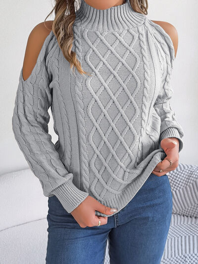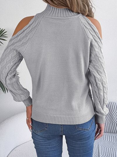 Cable Knit Cold Shoulder Turtleneck Sweater