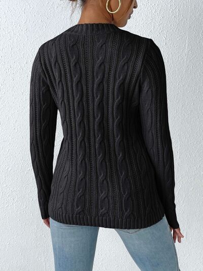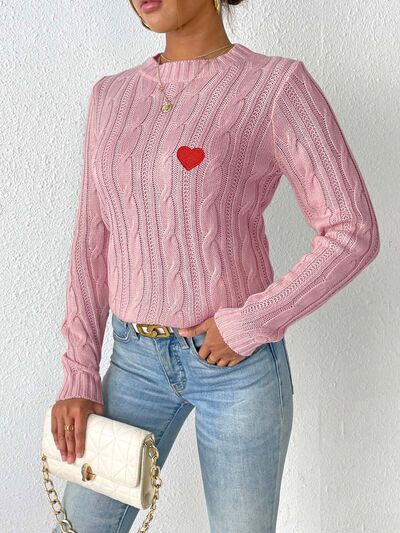Cable-Knit Heart Round Neck Long Sleeve Sweater