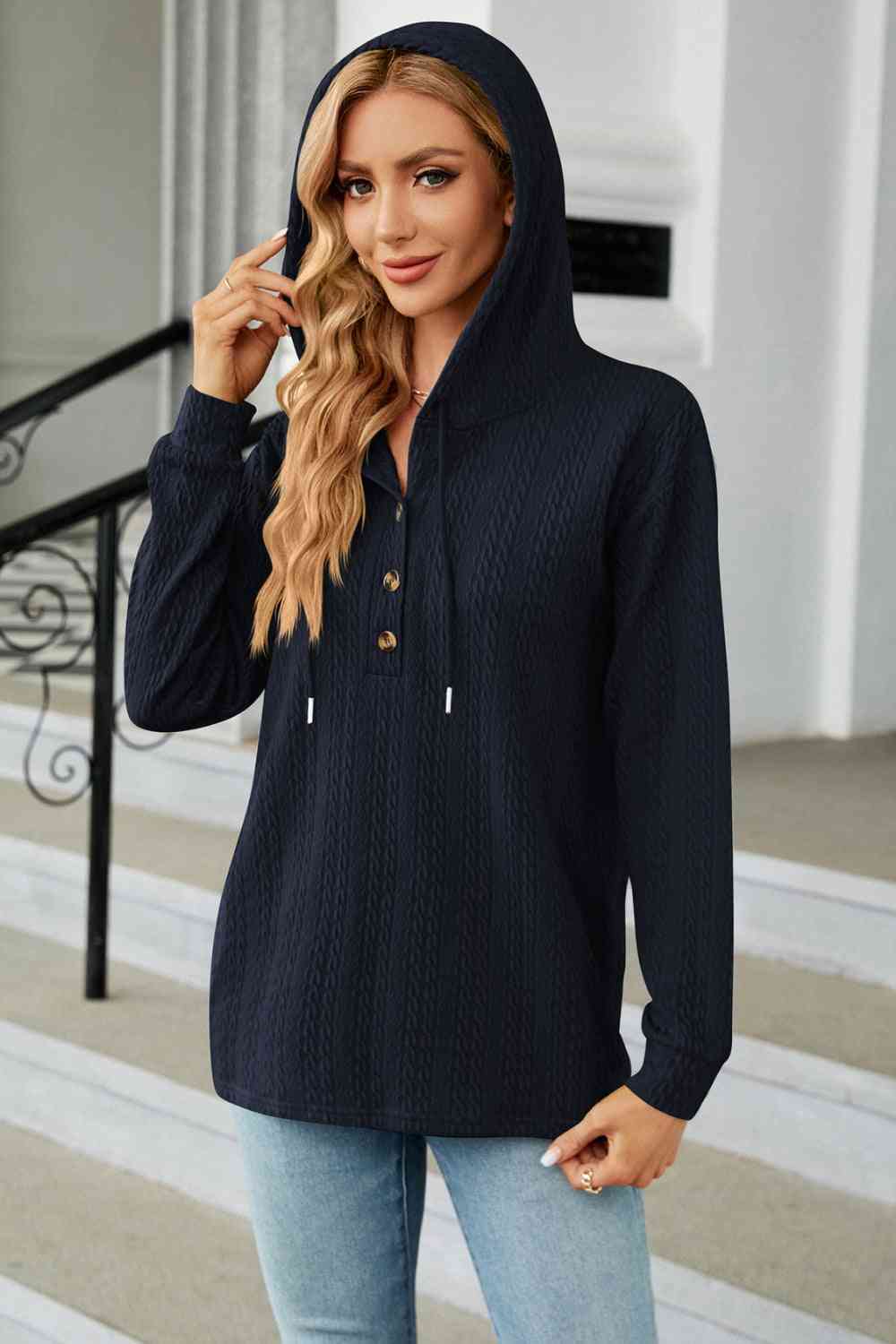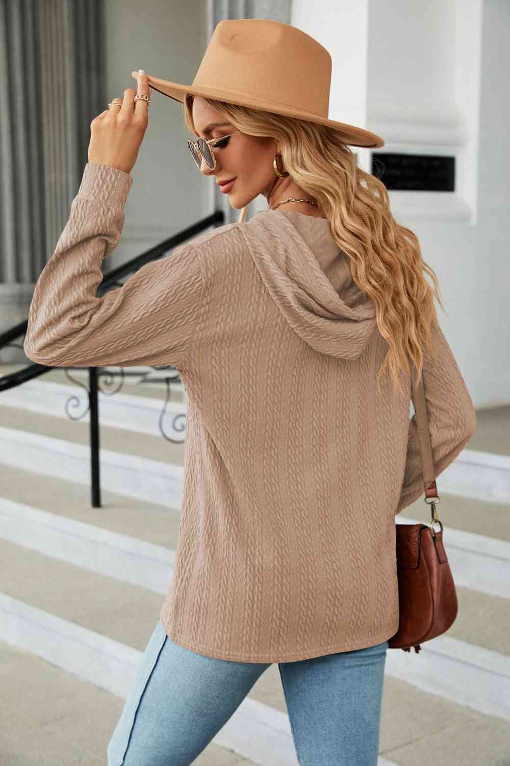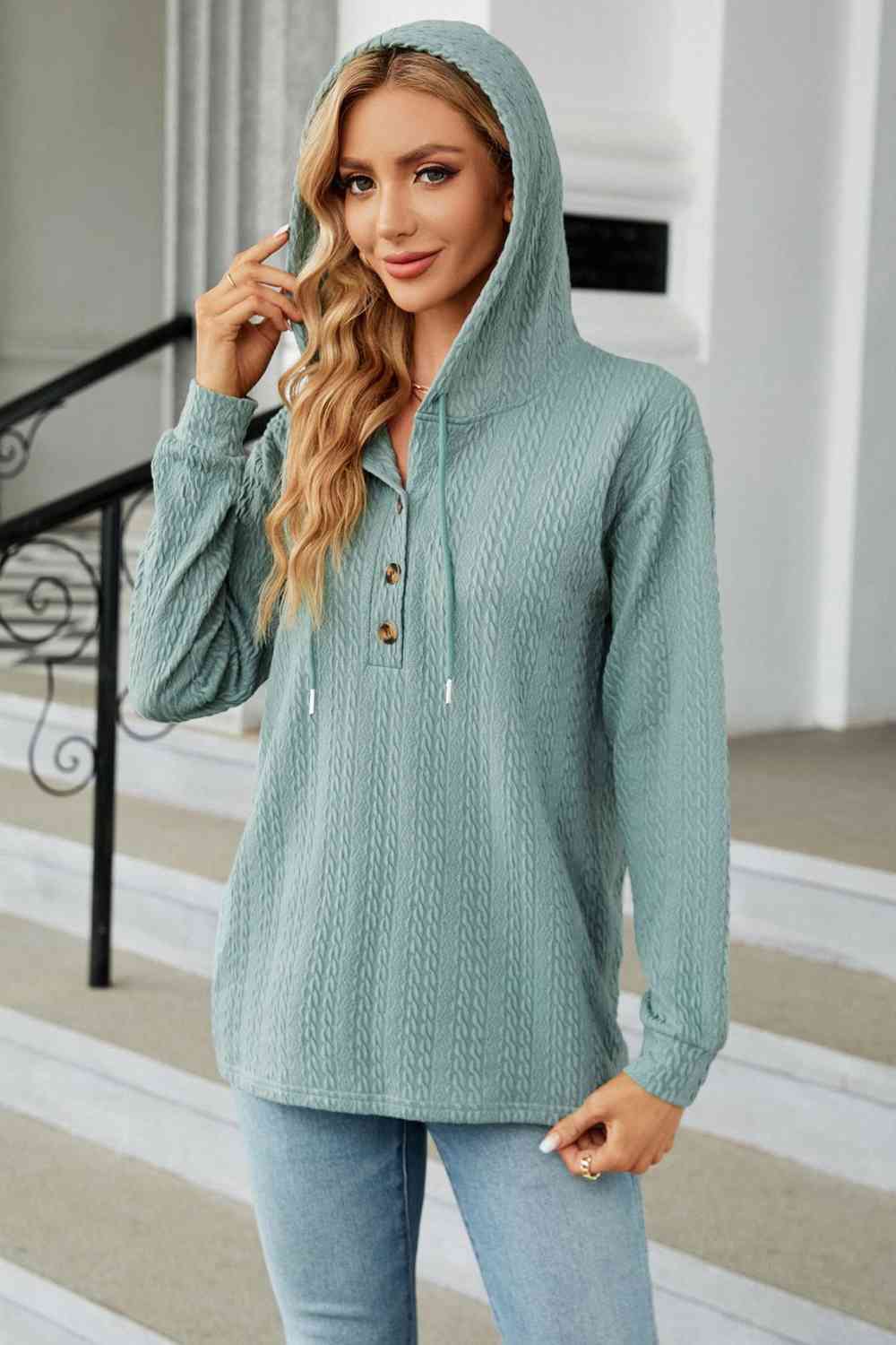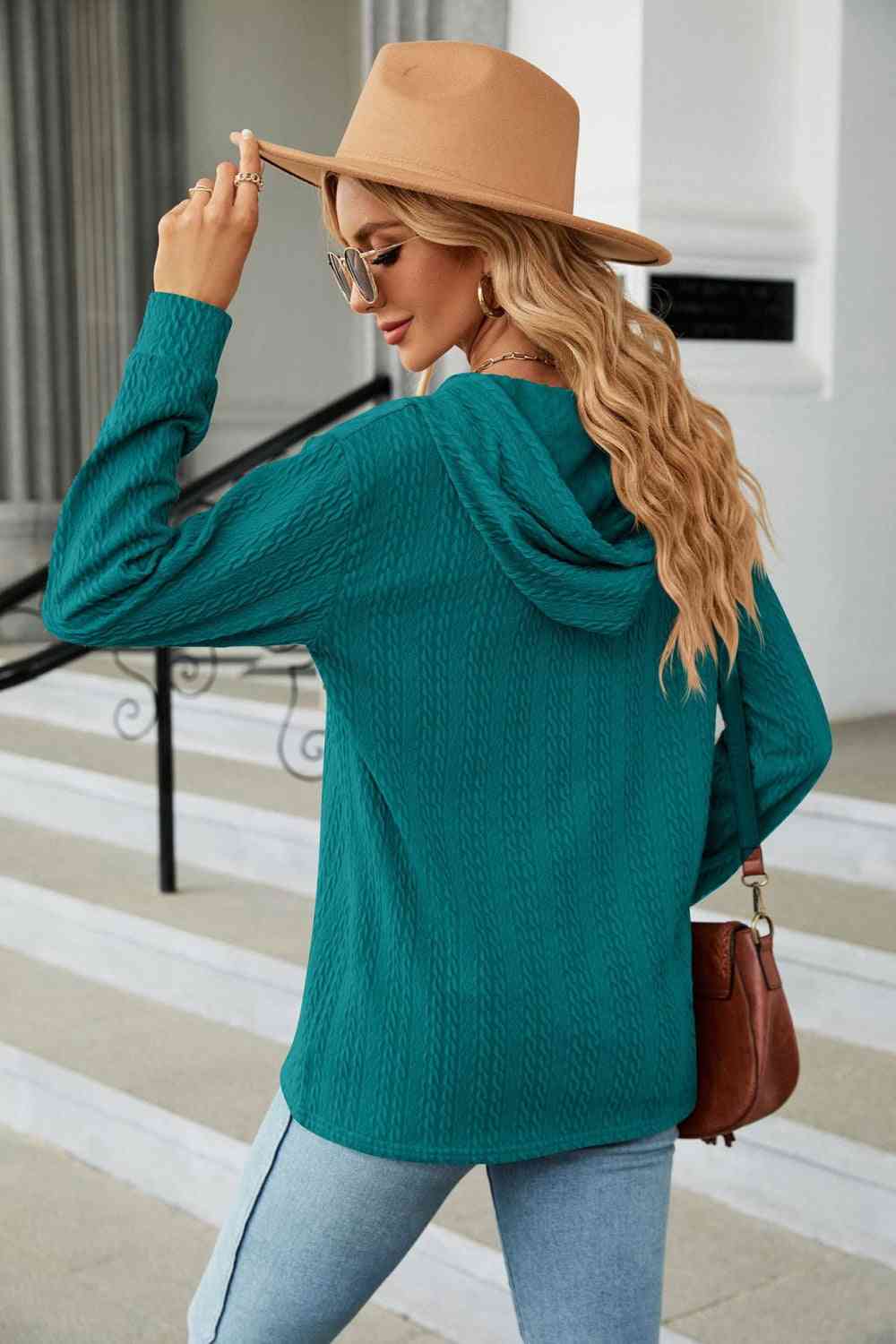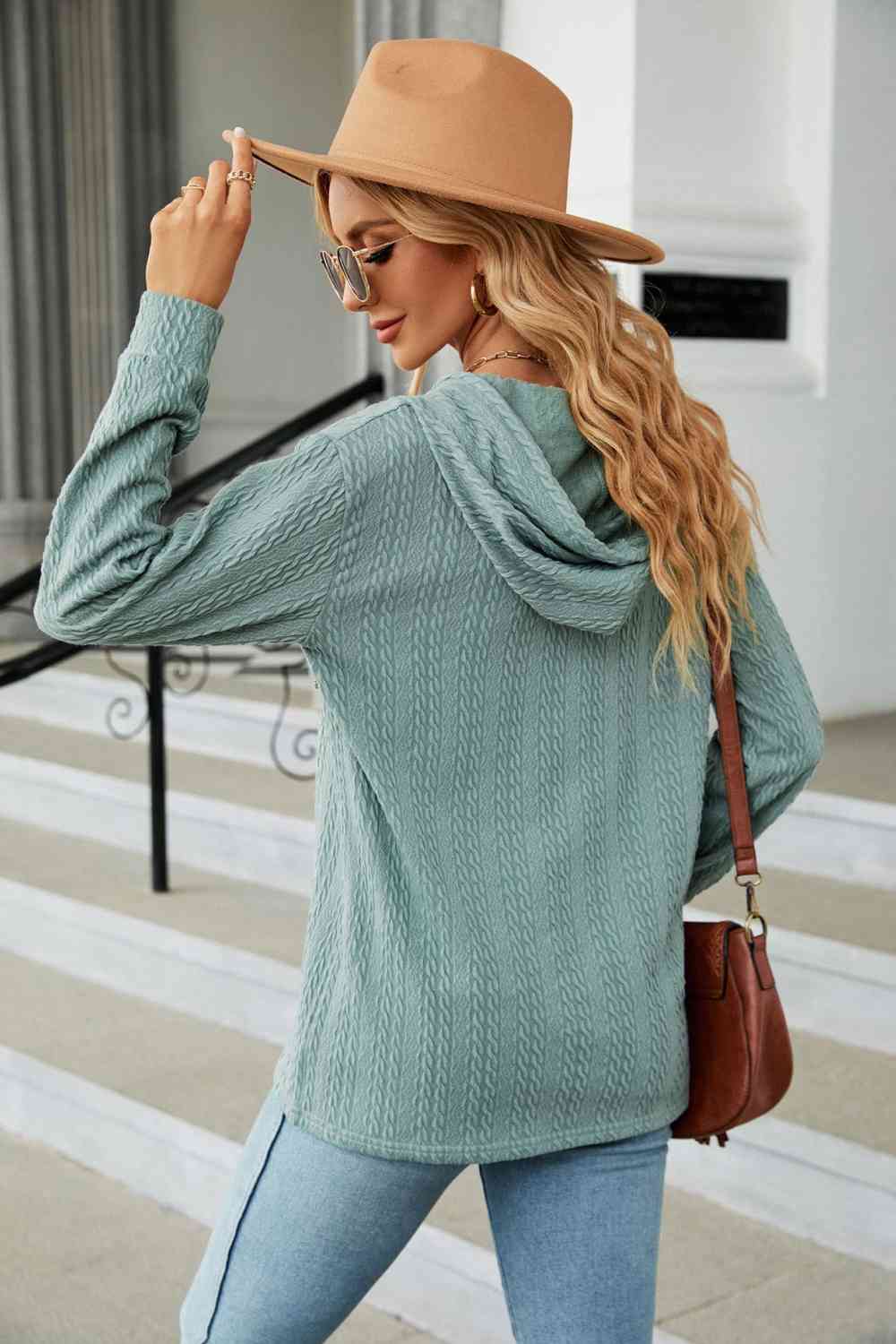 Cable-Knit Long Sleeve Hoodie