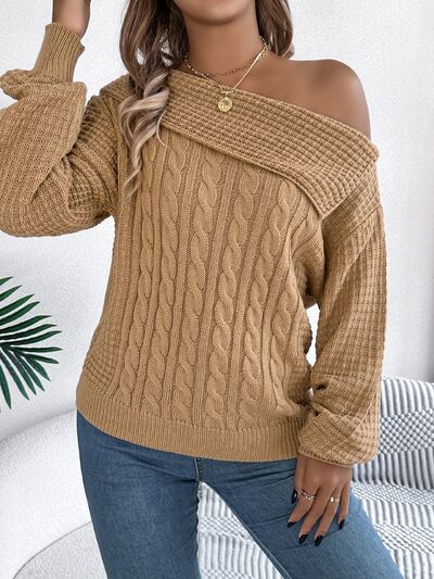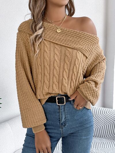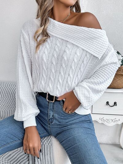 Cable-Knit One Shoulder Long Sleeve Sweater