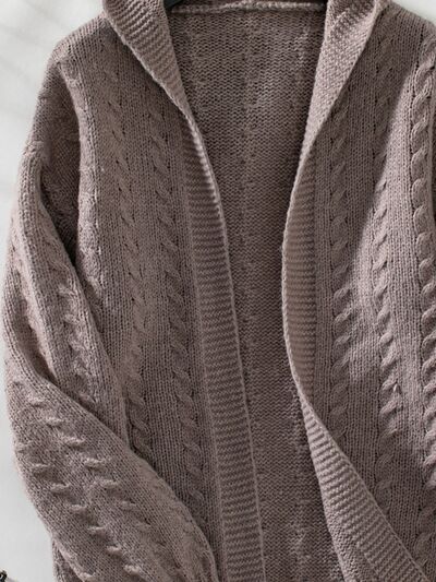 Cable Knit Open Front Hooded Cardigan