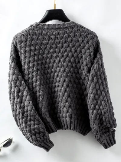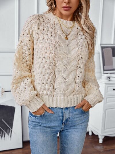 Cable-Knit Round Neck Long Sleeve Sweater