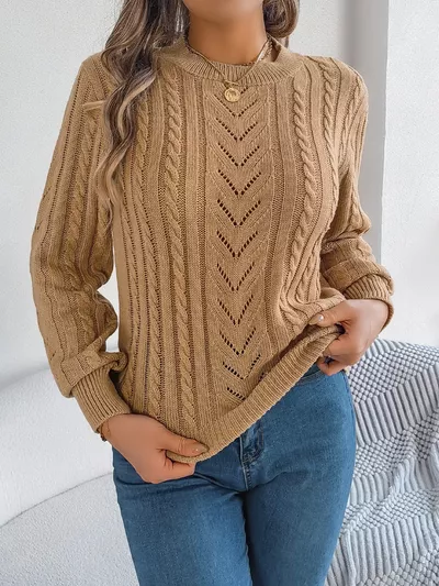 Cable-Knit Round Neck Sweater