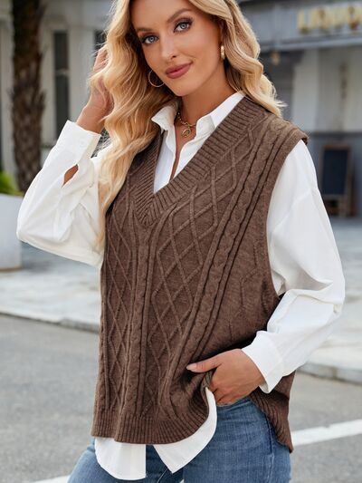 Cable Knit V-Neck Sweater Vest