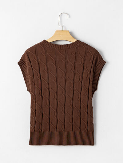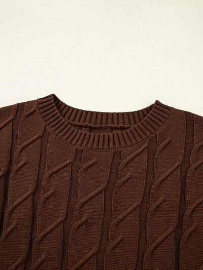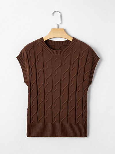 Cable Texture Crew Neck Short Sleeve Sweater Top