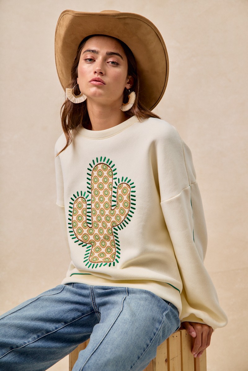 Cactus Embroidered Fleece Sweatshirt