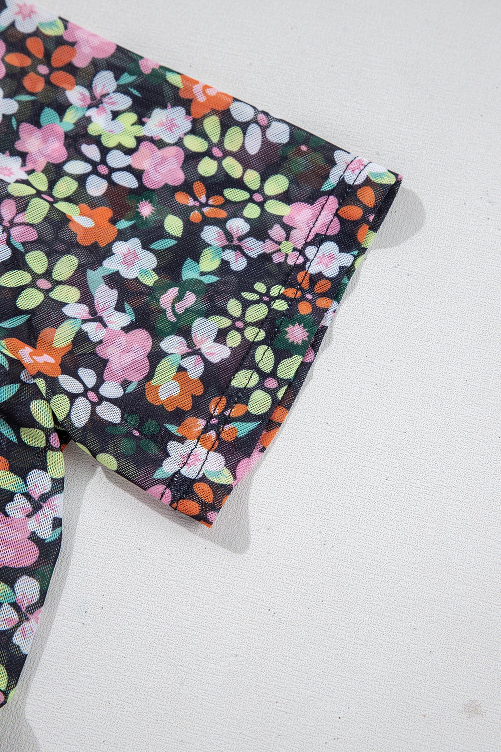Cami and Sheer Floral Mesh Round Neck Top Set