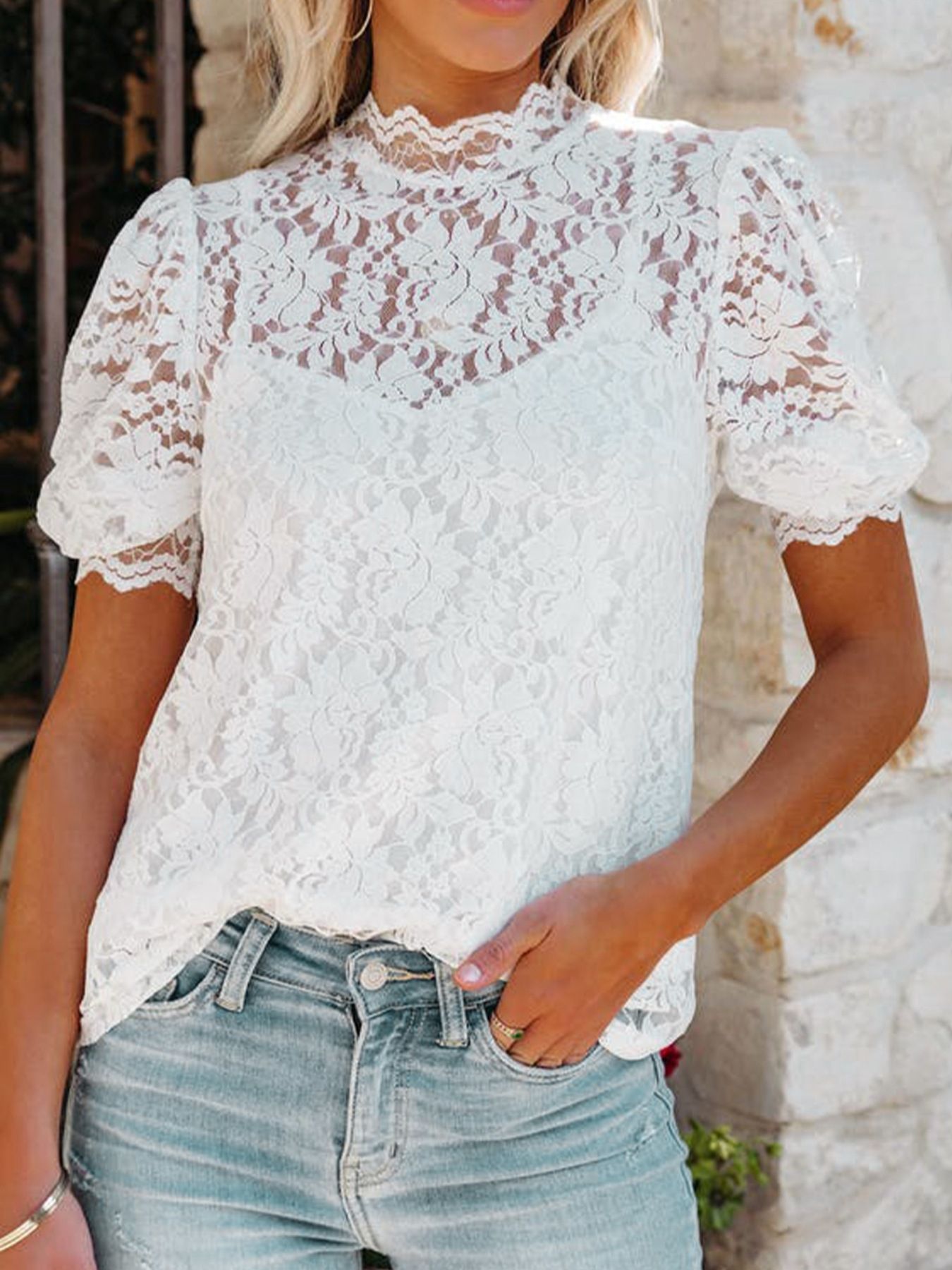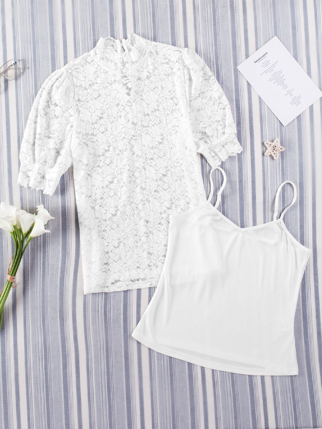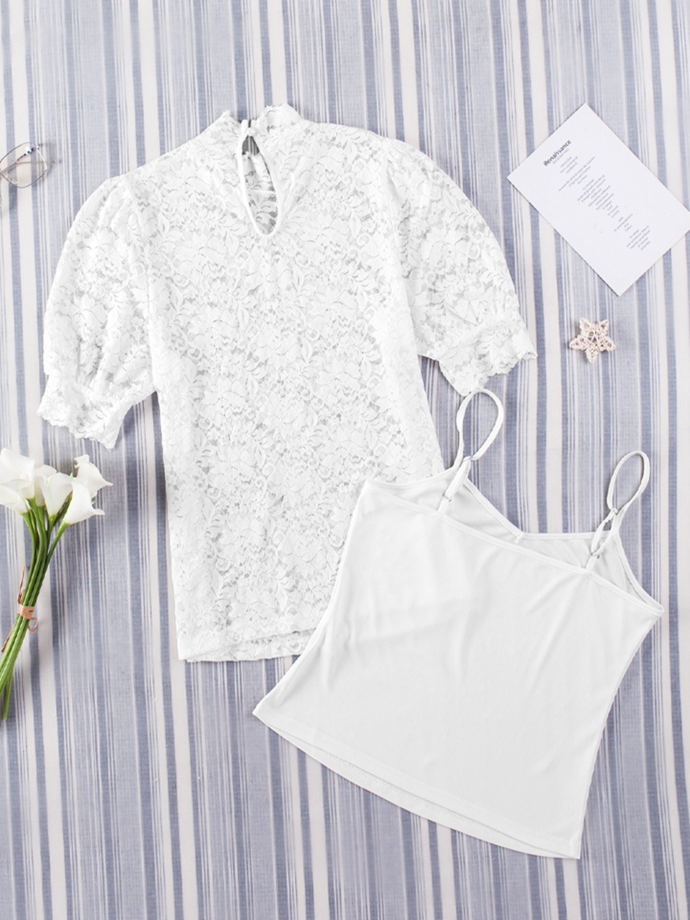 Cami & Lace Short Sleeve Blouse Set