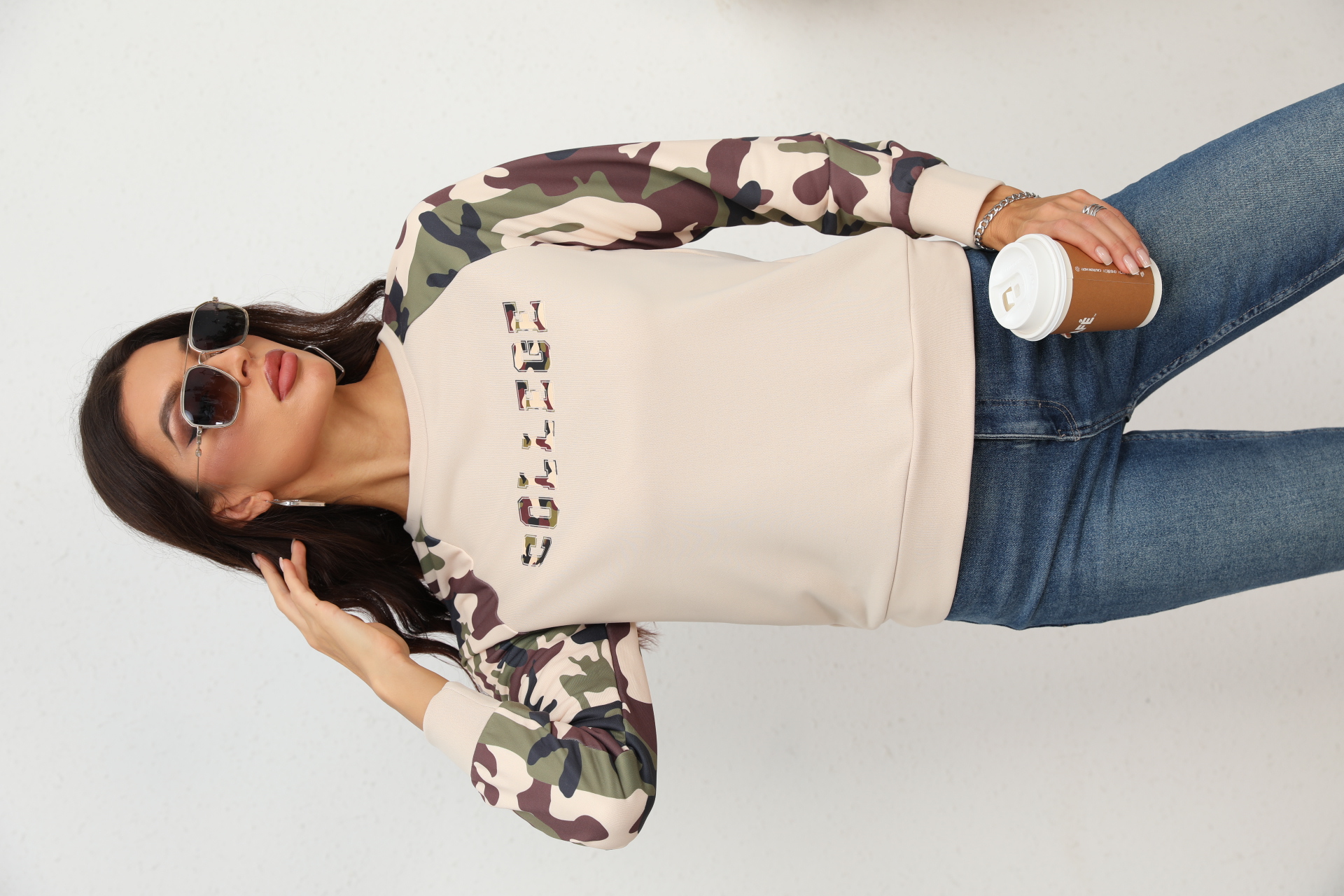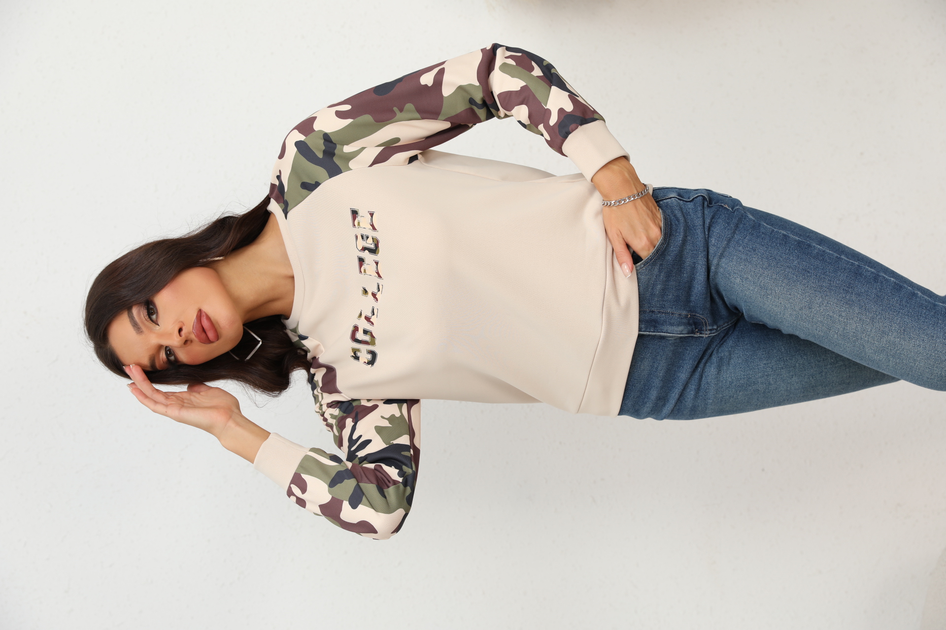 Camouflage Raglan Sleeve Sweatshirt
