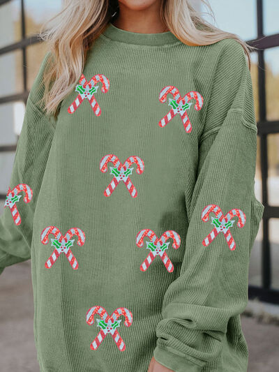 Candy Cane Shimmer Patched Corded Baggy Sweatshirt