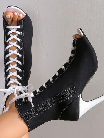 Canvas Lace-Up Peep Toe Stiletto Ankle Boots