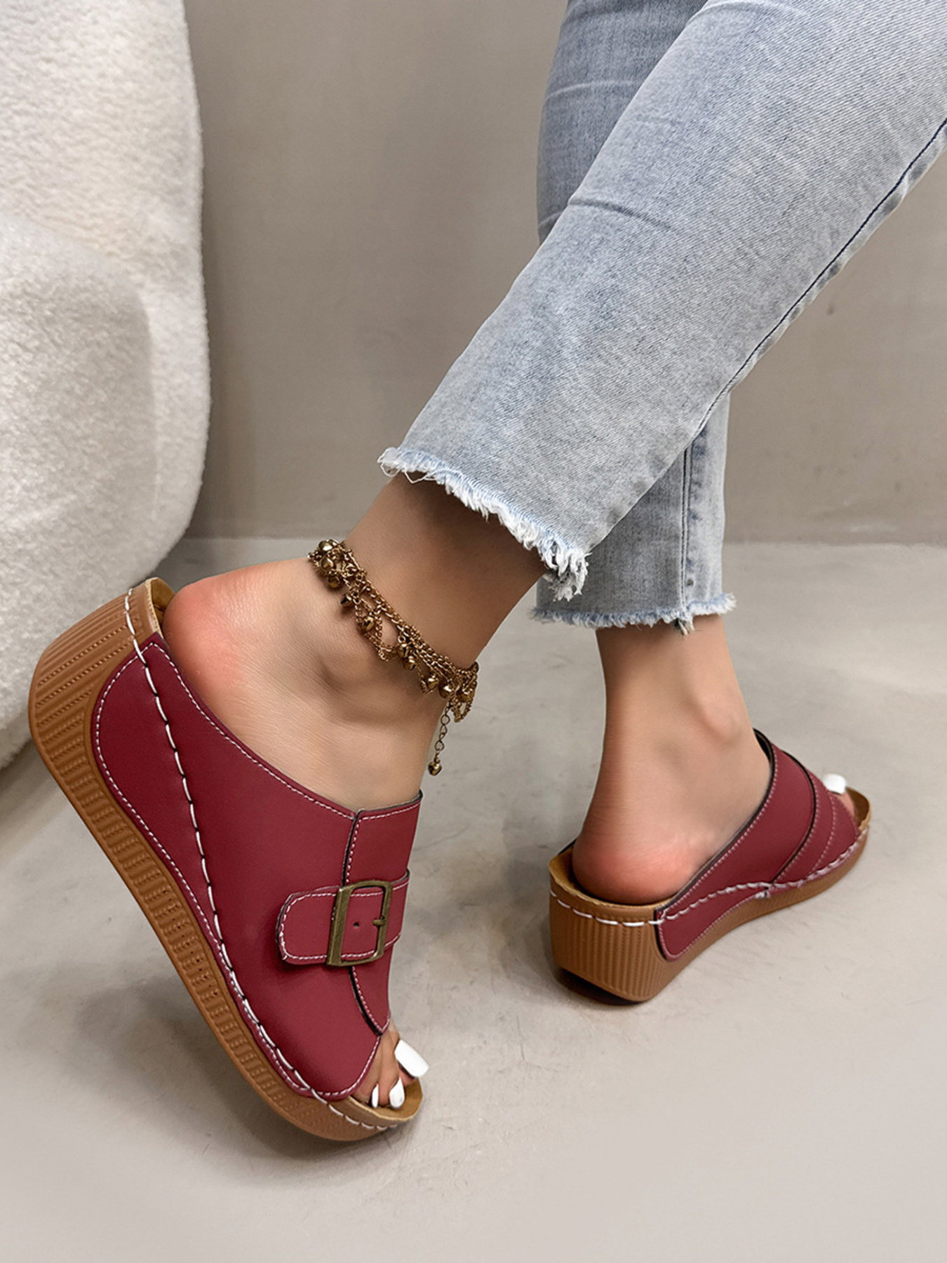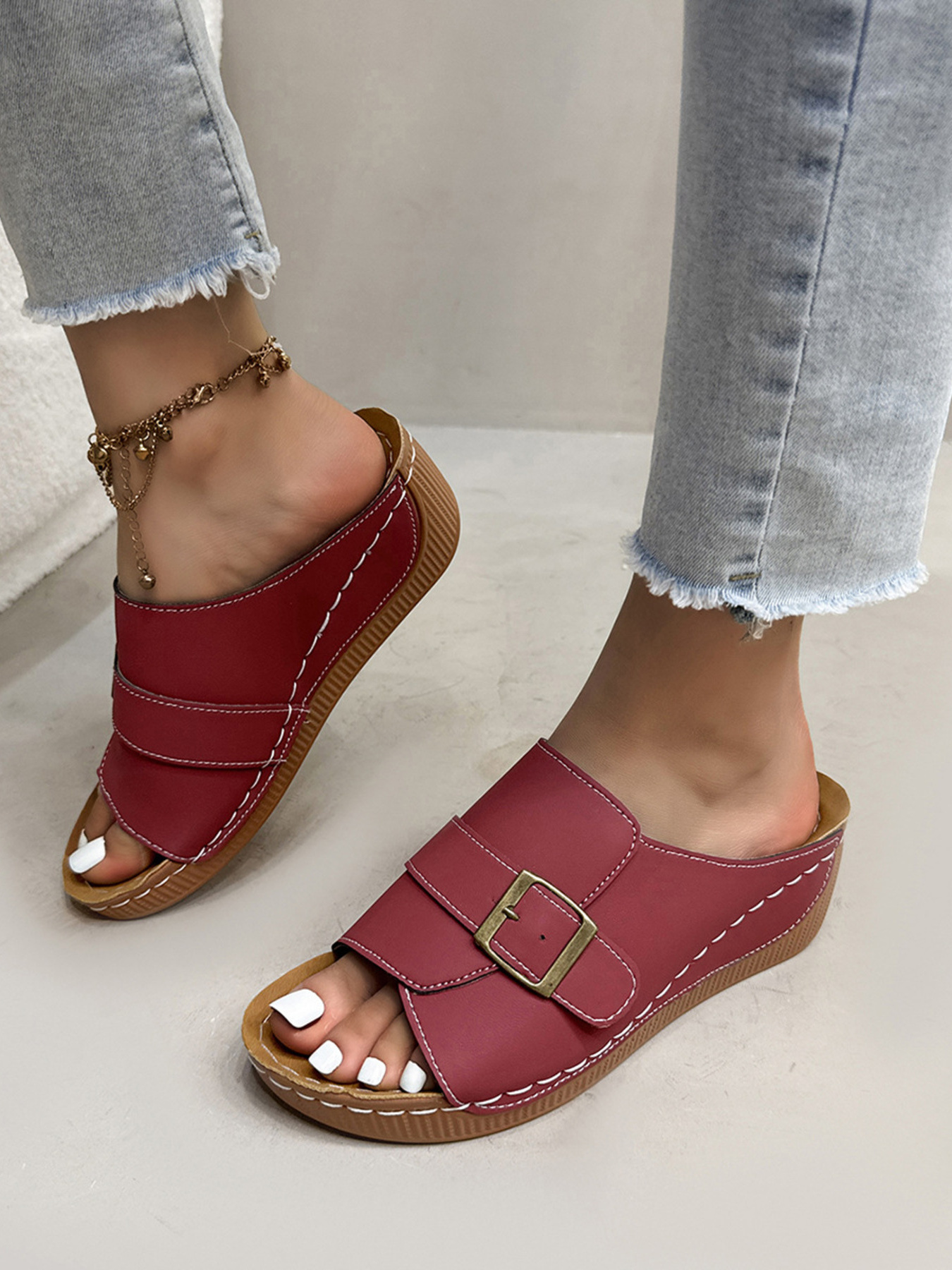 Casual Buckle Strap Wedge Sandals