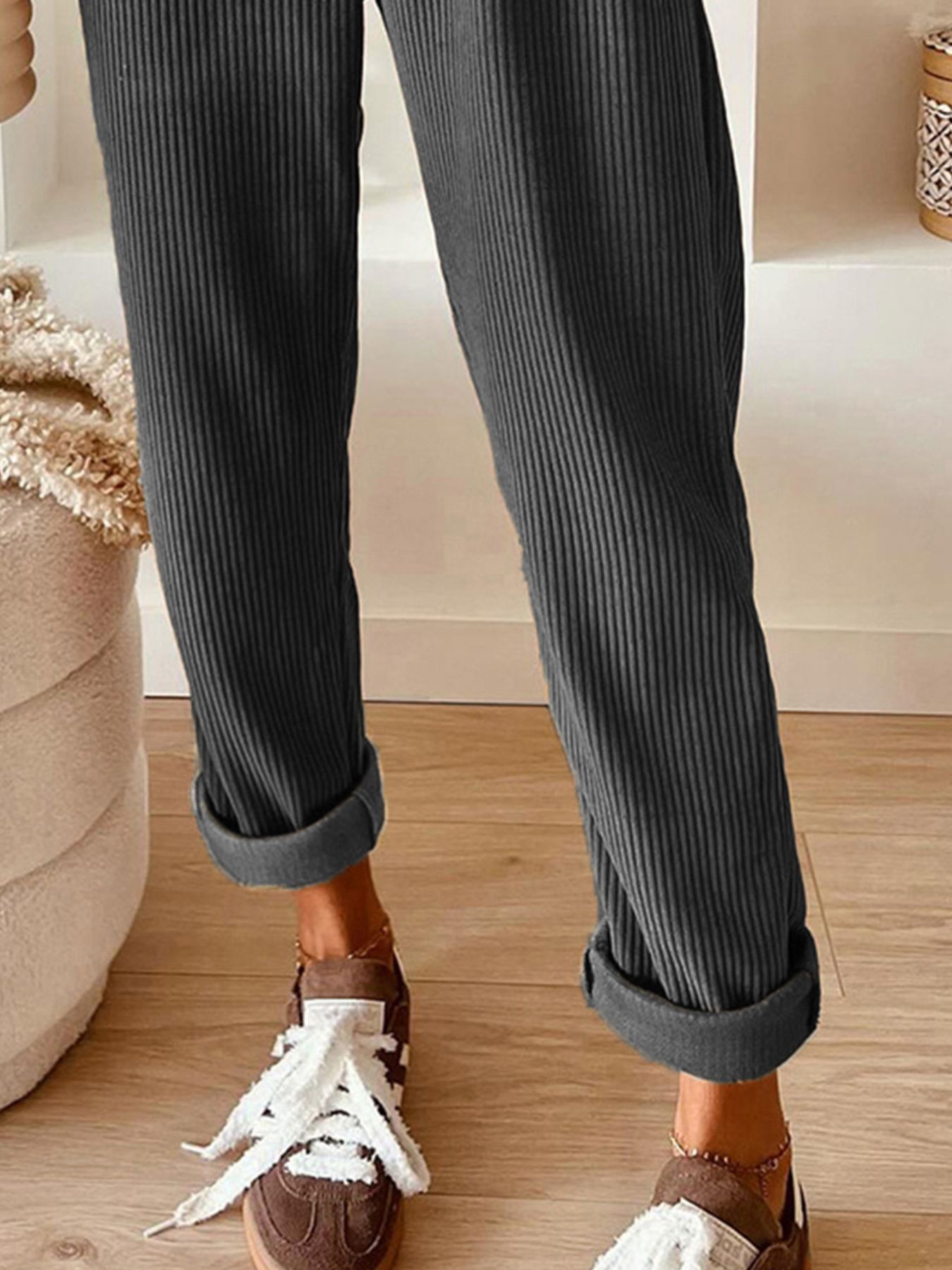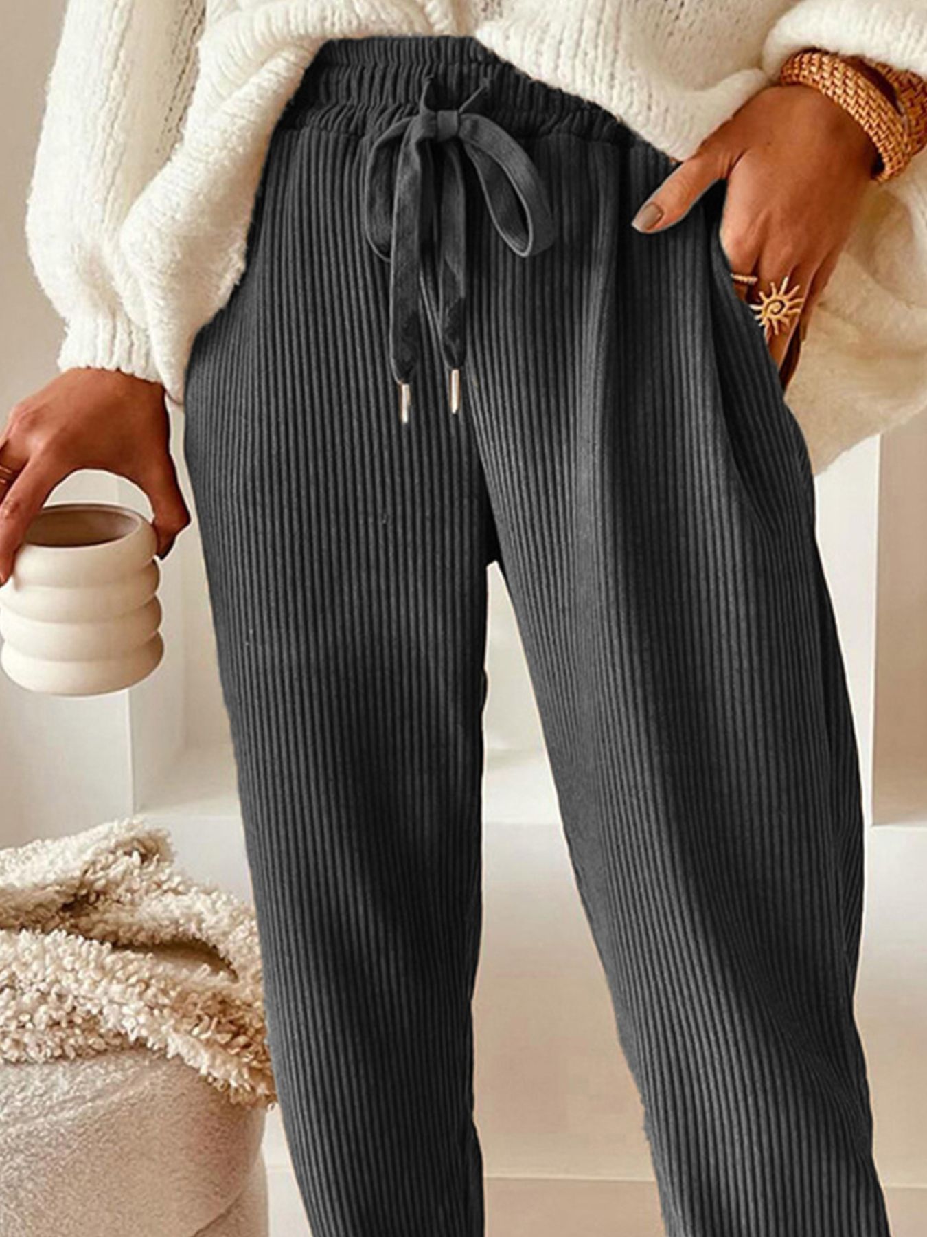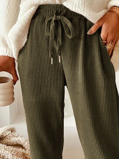 Casual Corduroy Drawstring Waist Pants
