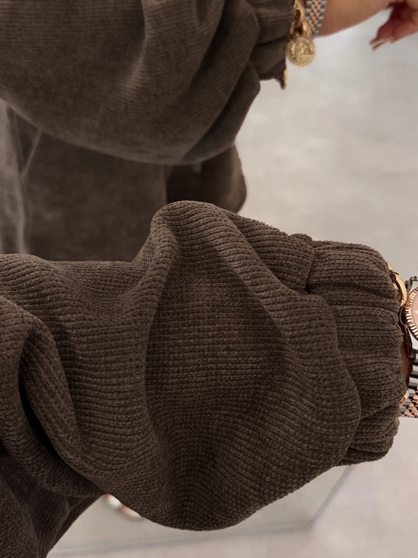 Casual Corduroy Long Sleeve Top and Drawstring Shorts Set