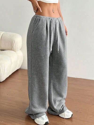 Casual Drawstring High Waist Wide Leg Sweatpants