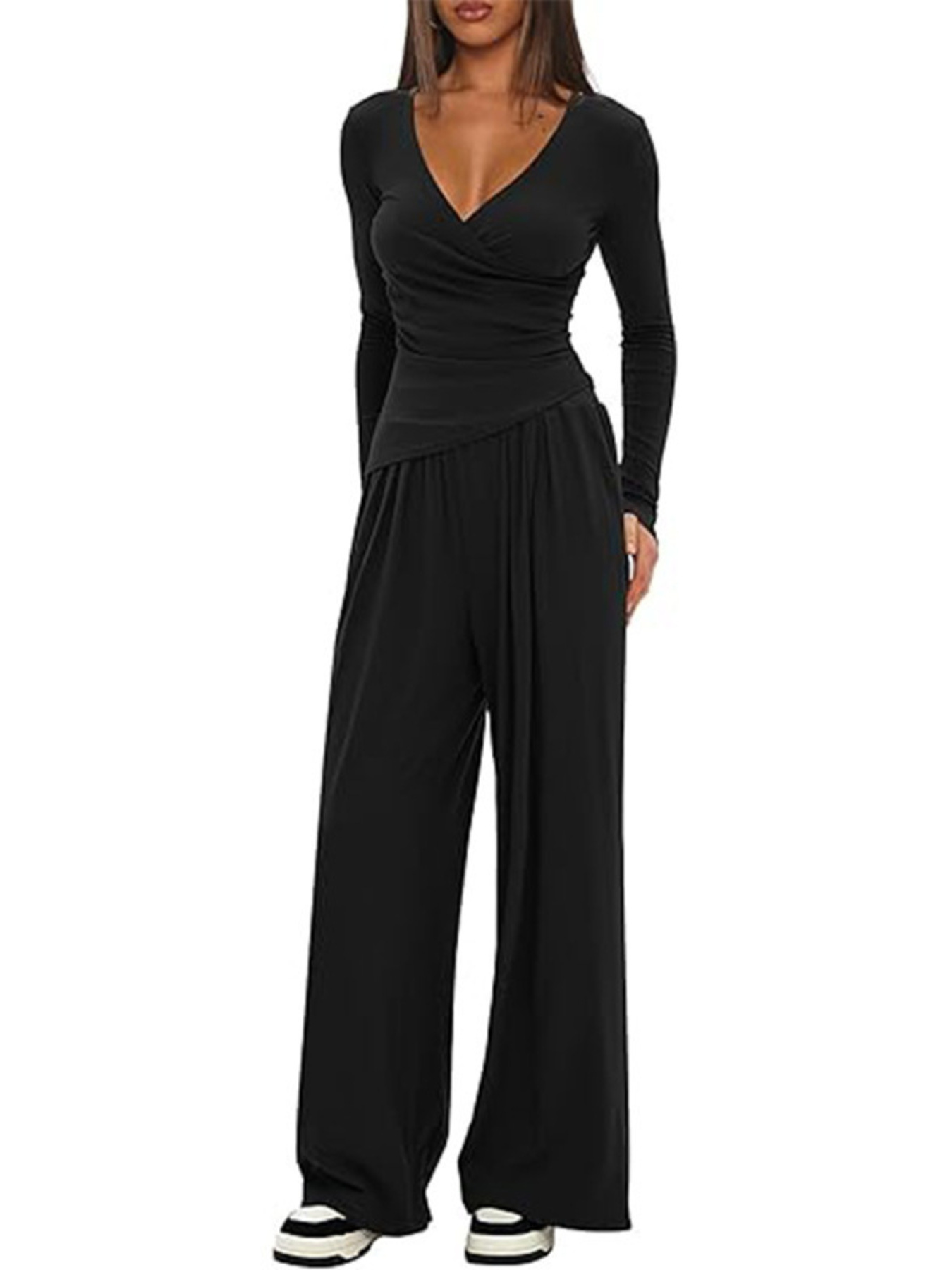 Casual Long Sleeve Top and Pants Two-Piece Set