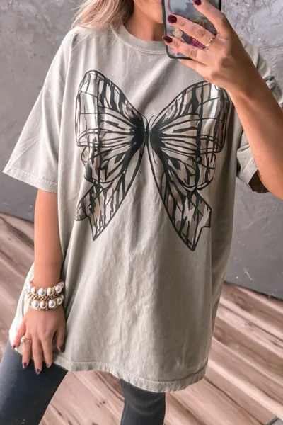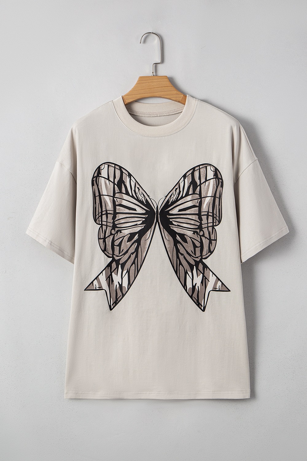 Casual Oversize Bow Drop Shoulder Tunic Casual Tee