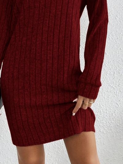 Casual Ribbed Turtleneck Long Sleeve Mini Dress