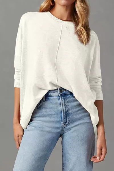 Casual Seam Detail Loose-Fit Knit Sweater
