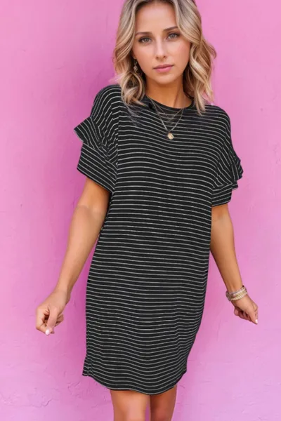 Casual Striped T-Shirt Dress with Pockets