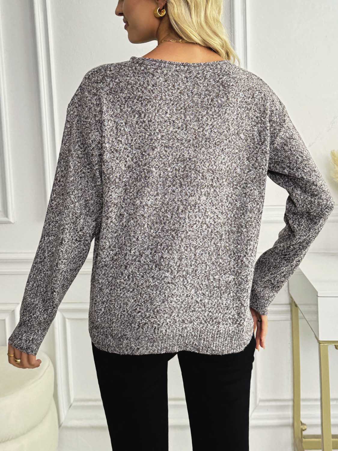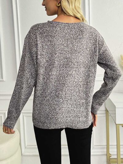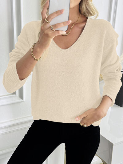 Casual V-Neck Drop Shoulder Sweater